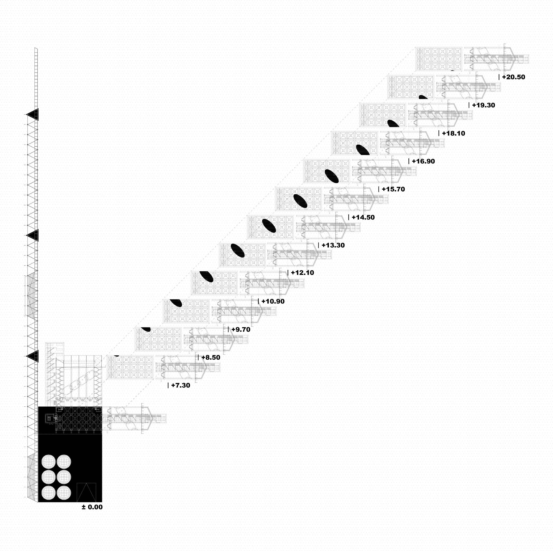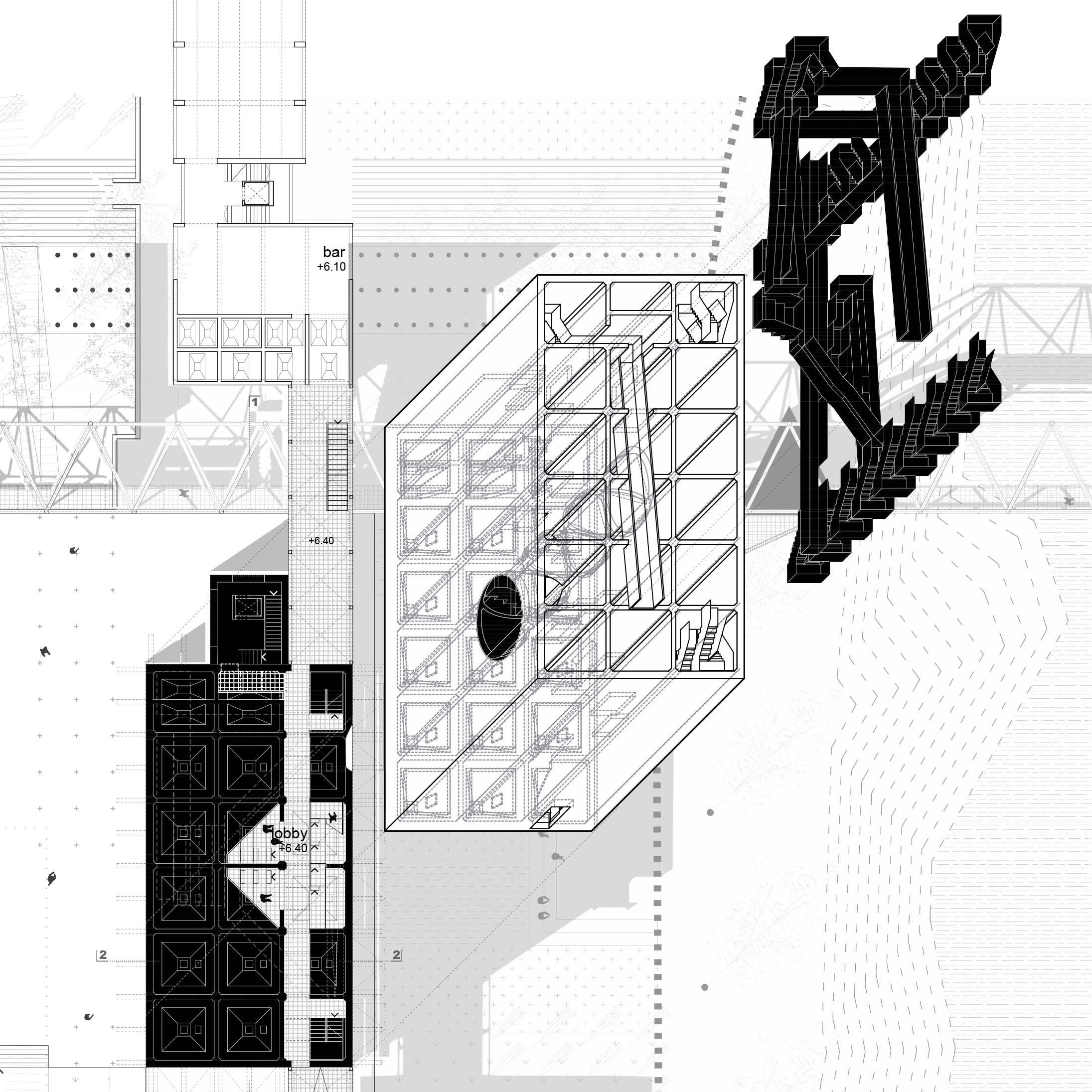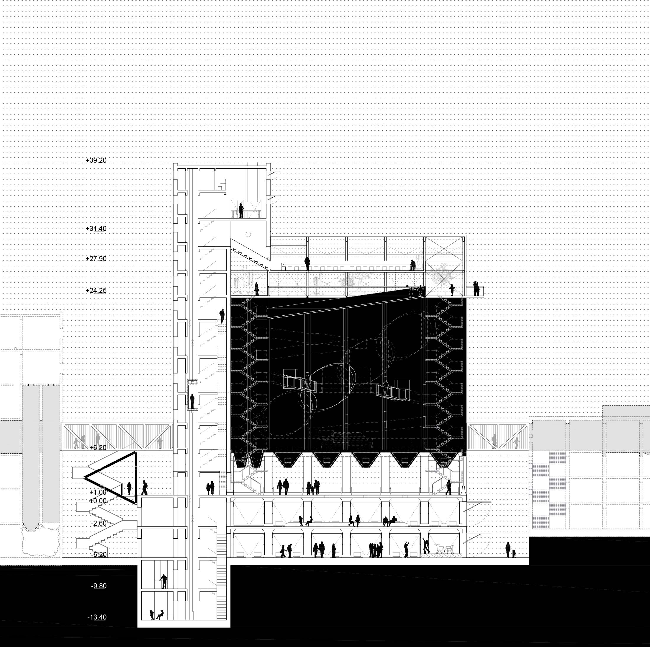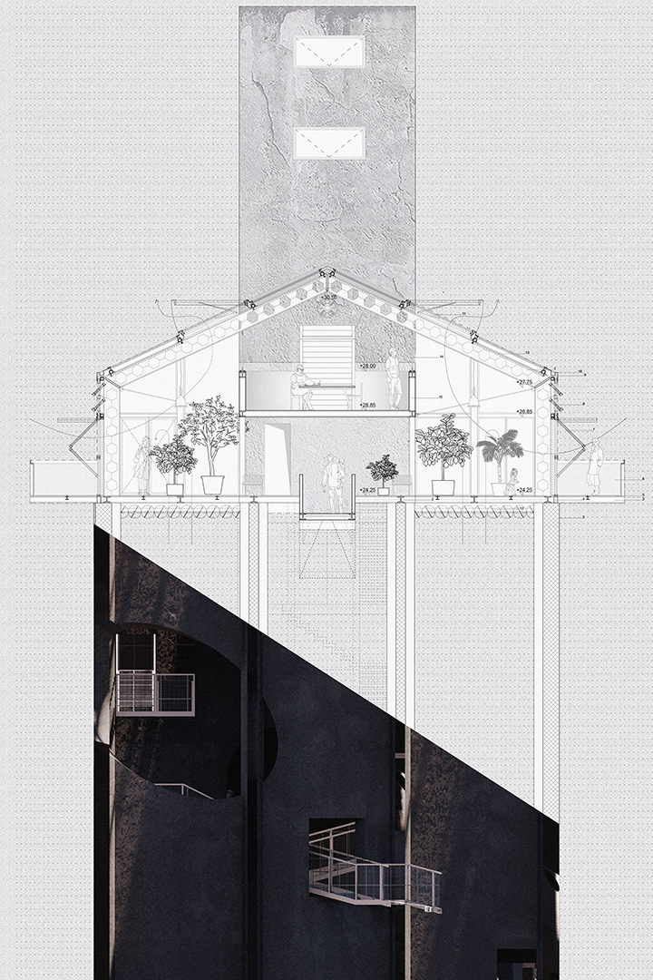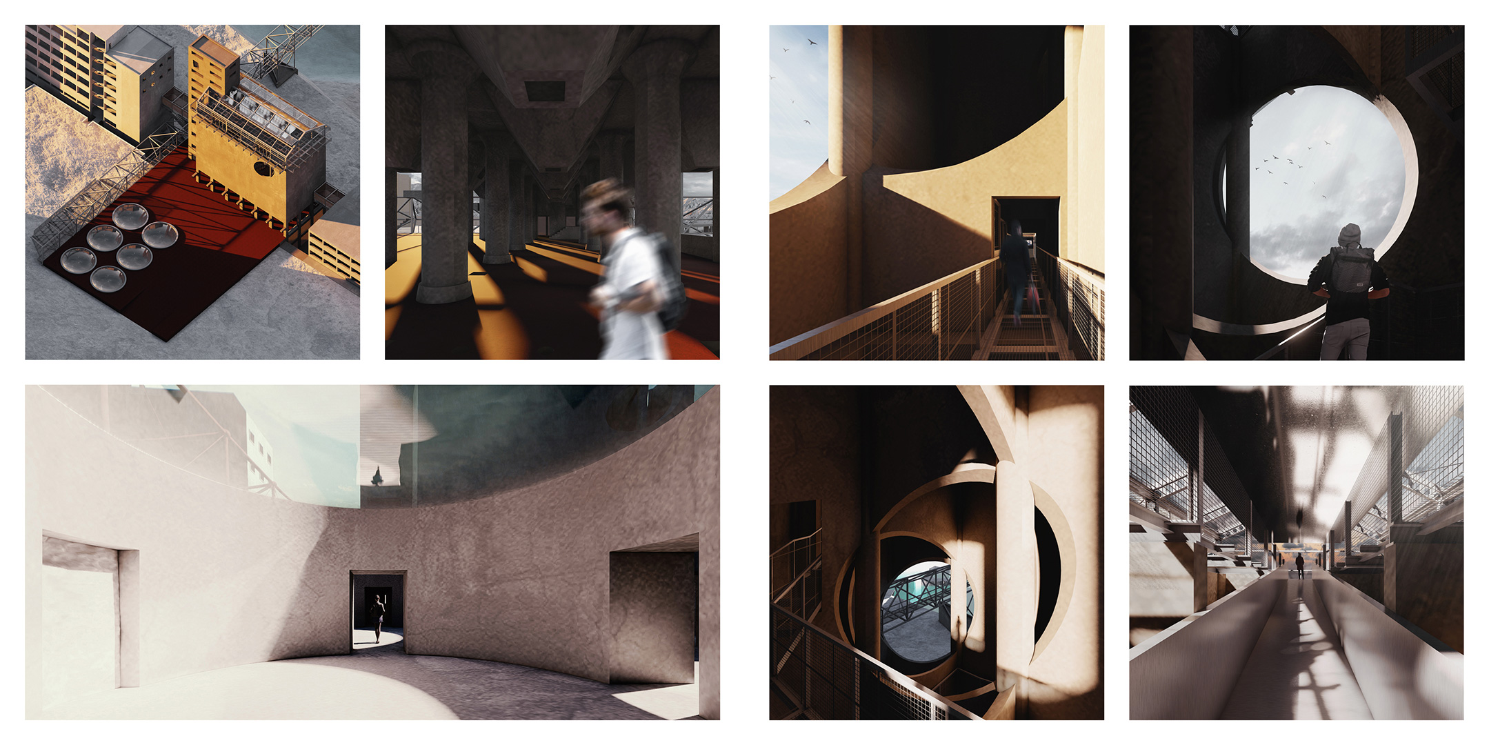 Industrijski sklop od 13 građevina, prisilno devastiran procesima privatizacije, postaje središte arhitektonske intervencije. Zatvoren i autonoman kompleks, konstruktivno nepobjediv i definiran zbrojem svojih volumena, a ne površina, otvara se gradu, rijeci i koritu. Nekadašnja kuća žita postaje kuća ljudi, a silosi i trg definiraju novo gradsko ishodište. Kretanje izbušenom masom početak je doživljavanja oslobođenih scenarija – nova praznina otkriva cjelovitost kuće. Mjesec dana od završetka rada počinje rušenje kompleksa.