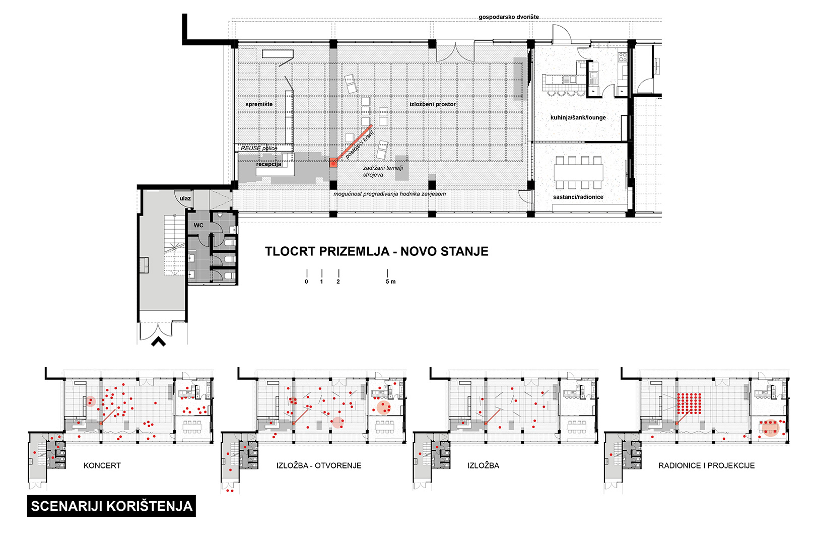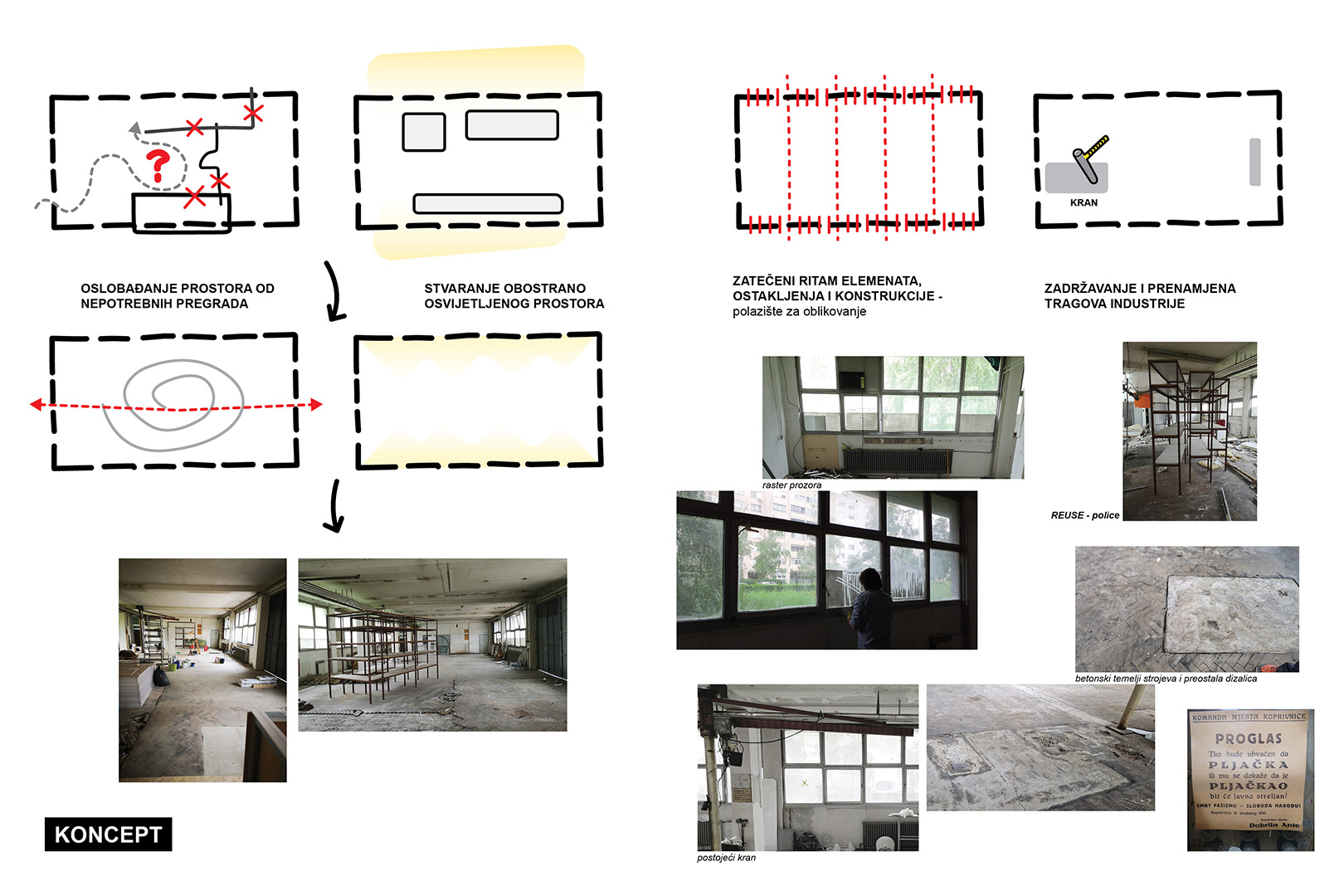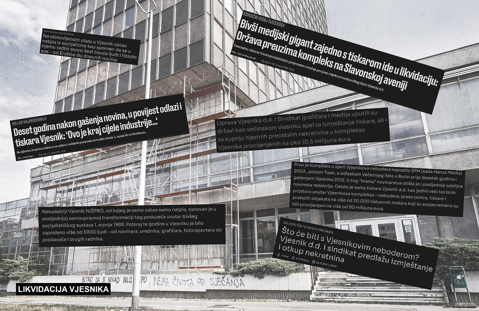 Vjesnik, antologijska zgrada i nekad vodeća novinsko-izdavačka organizacija danas proživljava potpunu degradaciju. U jedan dio zgrade useljava galerija nezavisne kulture. Pretvaranje nekadašnje radionice za popravak tiskarskih strojeva, korištene desetljećima kao skladište, uz vrlo ograničen budžet bilo je jako izazovno. Bilo je važno očistiti prostor od nepotrebnih pregrada, vratiti cjelovitost i dvostrano osvjetljenje te afirmirati industrijski karakter interijera. Naglasak je bio na fleksibilnosti prostora te uspostavljanju dijaloga s nekadašnjim namjenama.