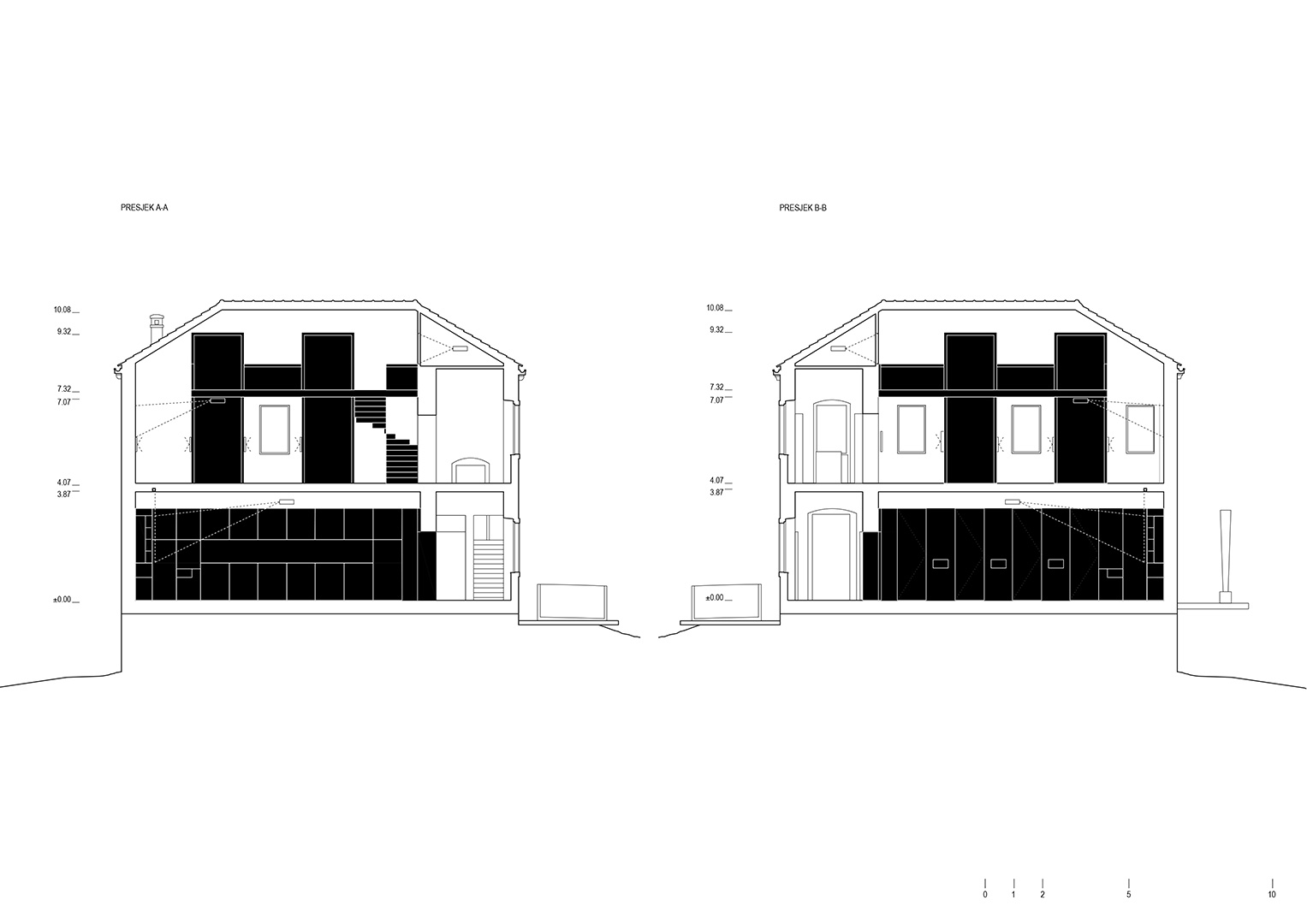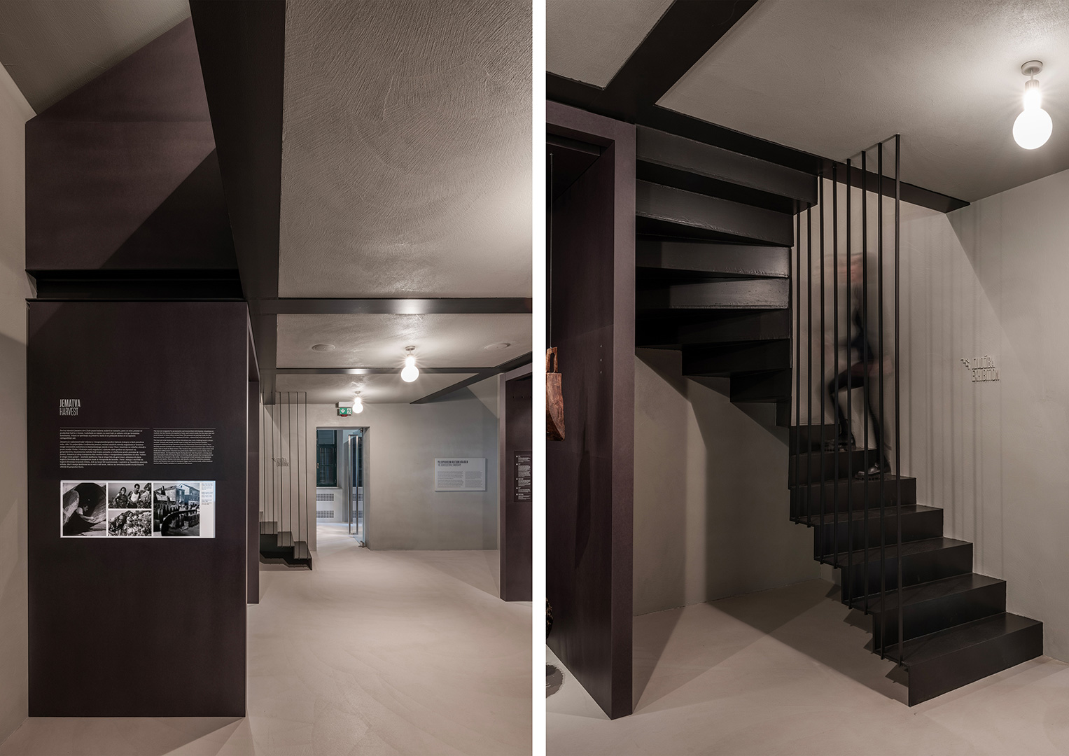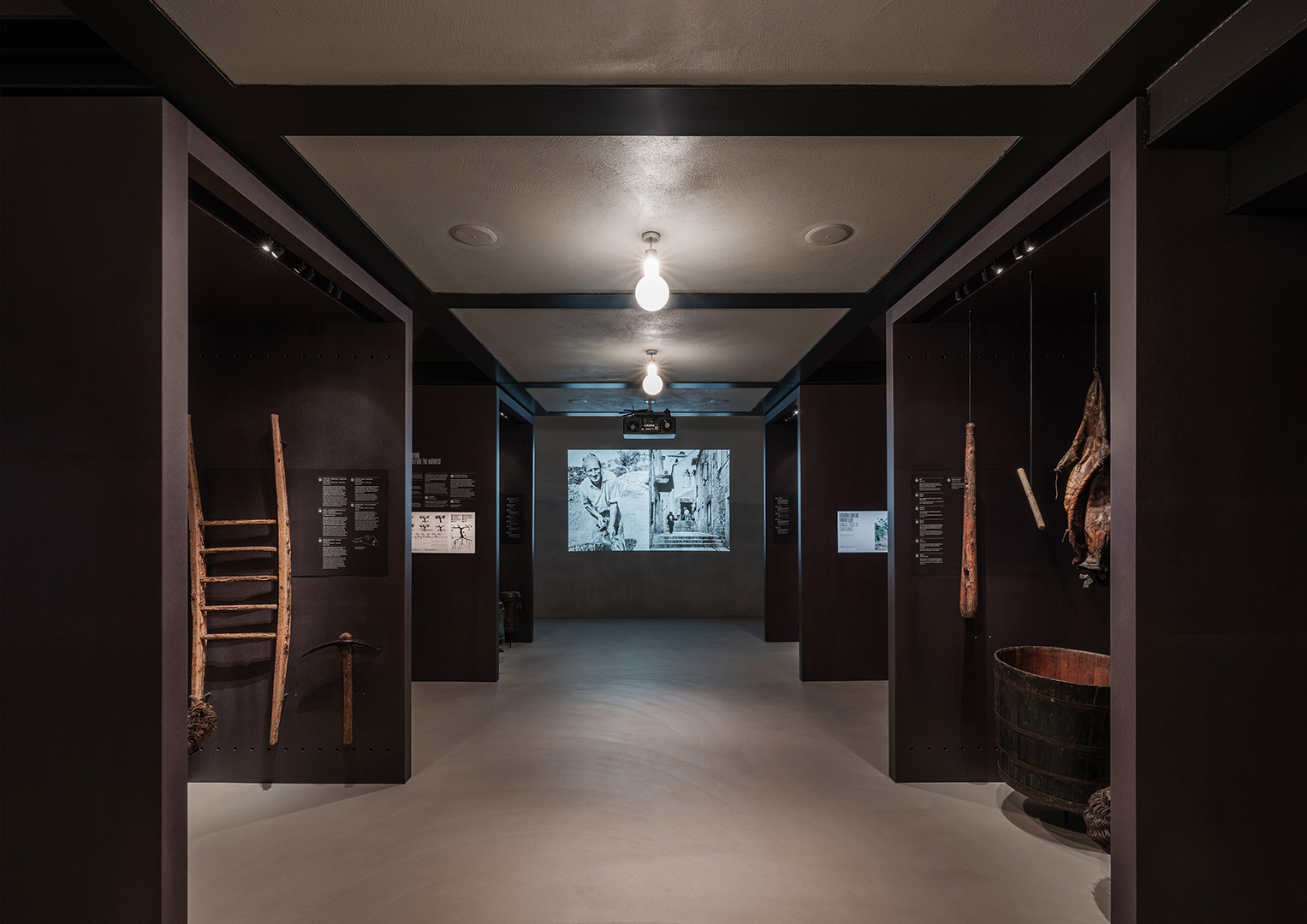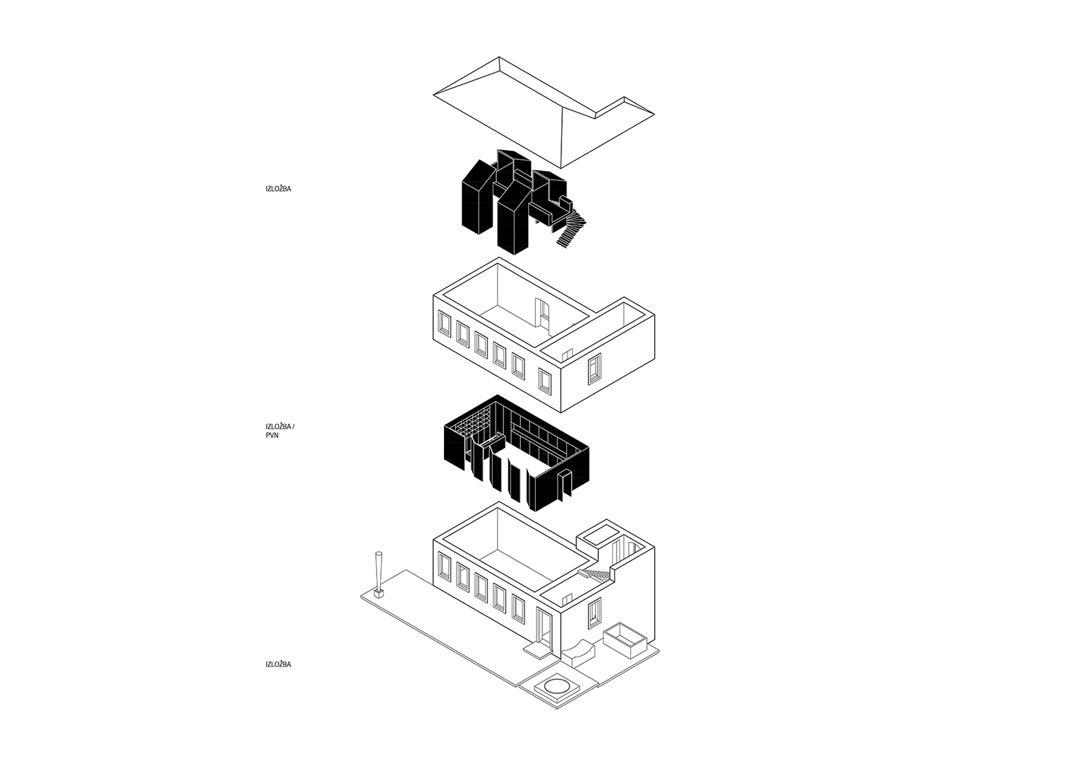 Prostorna koncepcija stalnog postava bazira se na integriranju suvremenih interijerskih elemenata od čelika i strukturno koloriranog mdf-a tako da se ne mijenja izvorno oblikovanje građevine. Stalni izložbeni postav i popratne namjene integriraju se unutar postojećega građevnog tkiva kao „uneseni“, neovisni prostorni element čelične konstrukcije koji stvara na prostoru kata dodatnu galeriju u potkrovlju, a ujedno i konstrukcijski učvršćuje građevinu. Kuća-škola u svojem volumenu istovremeno ostaje intaktna.