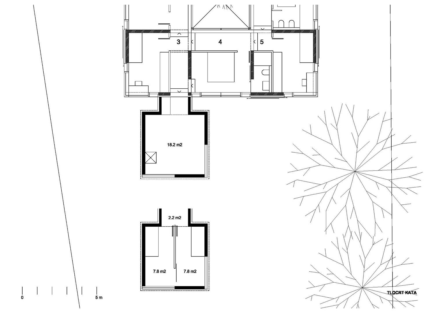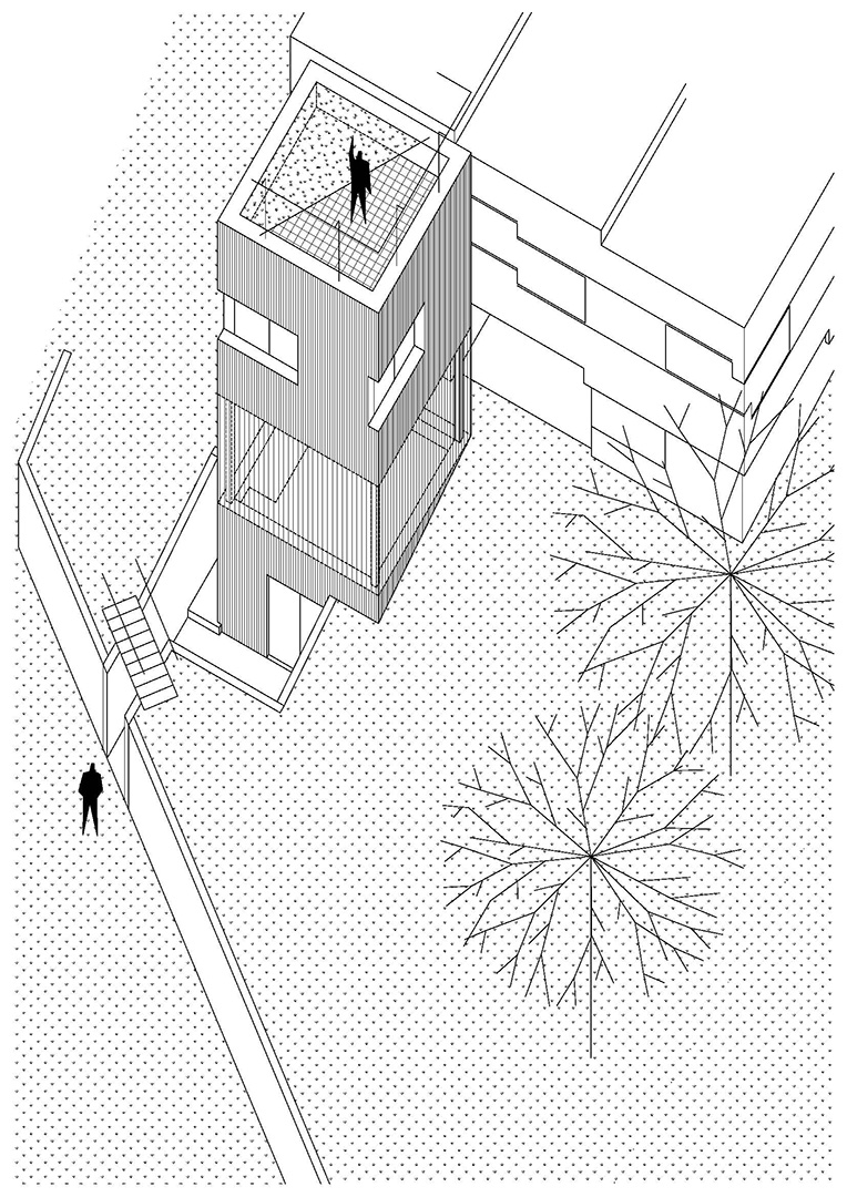 Desetak godina nakon useljenja i po rođenju šestog djeteta obiteljsku kuću potrebno je dograditi. Zbog planskih ograničenja dogradnja ne može slijediti princip rasta postojeće kuće. Slobodnostojeći aneks s dodatnim sobama, povezan mostom, može se postaviti s prednje, južne strane kuće ili s jedne od bočnih strana. Varijante: maleni toranj (1 tlocrtni modul), izduljeni volumen sa šed-krovom (2 tlocrtna modula).