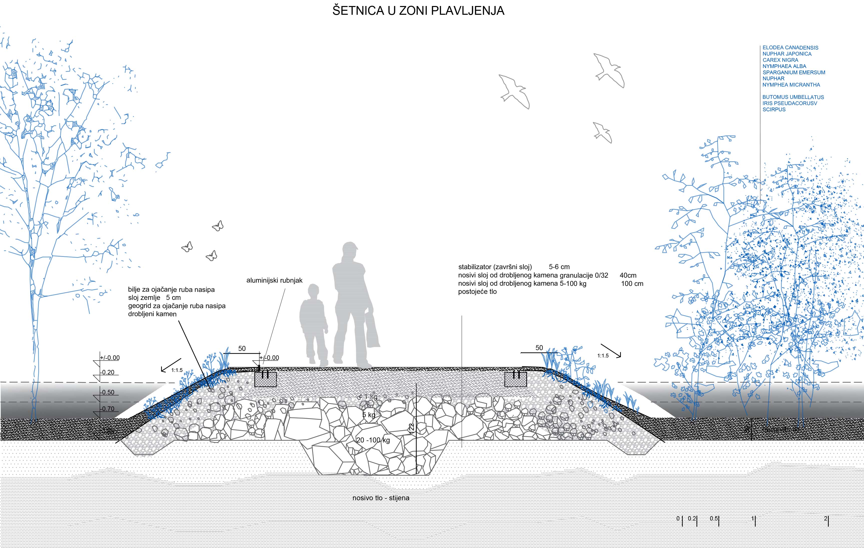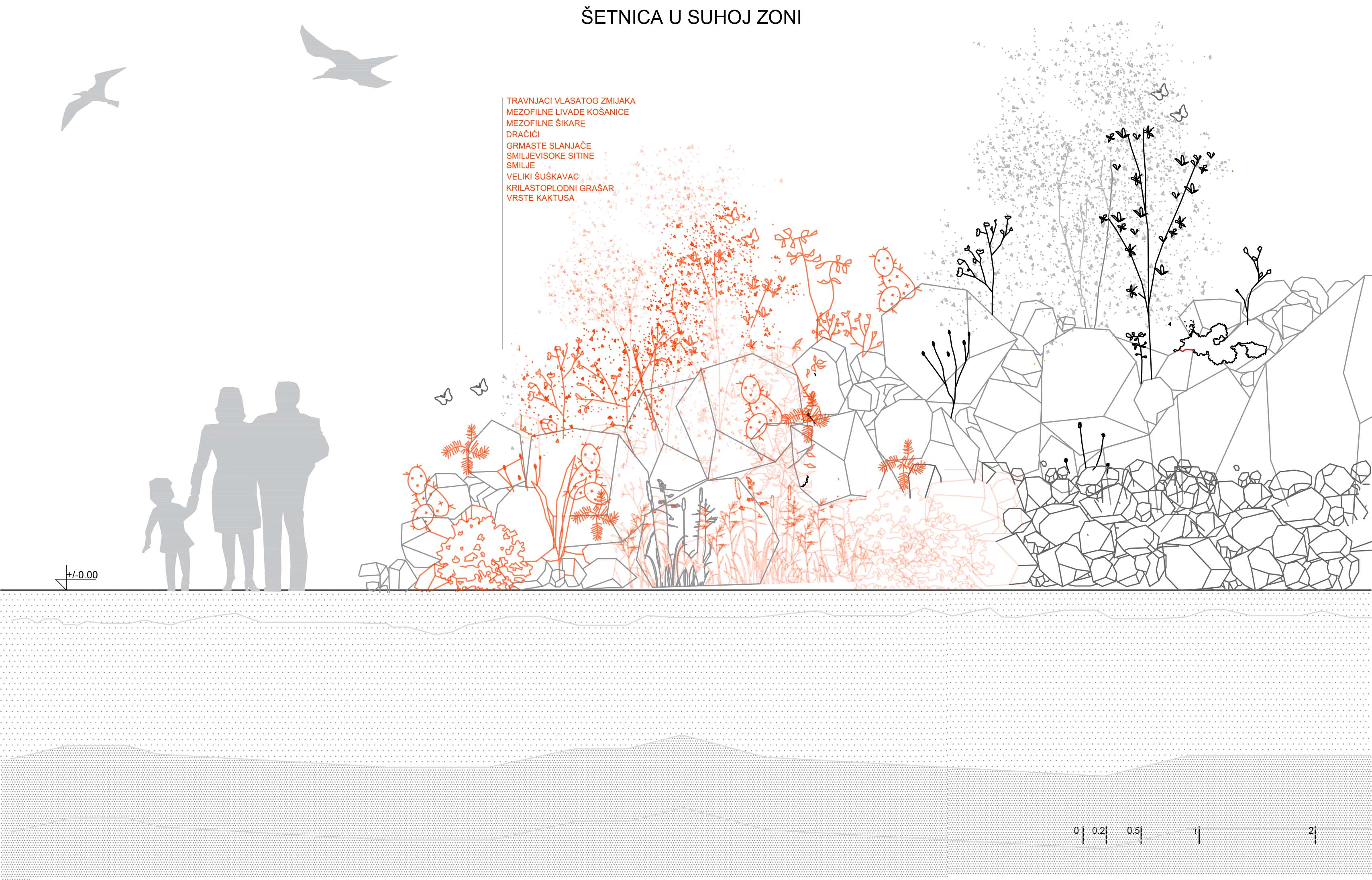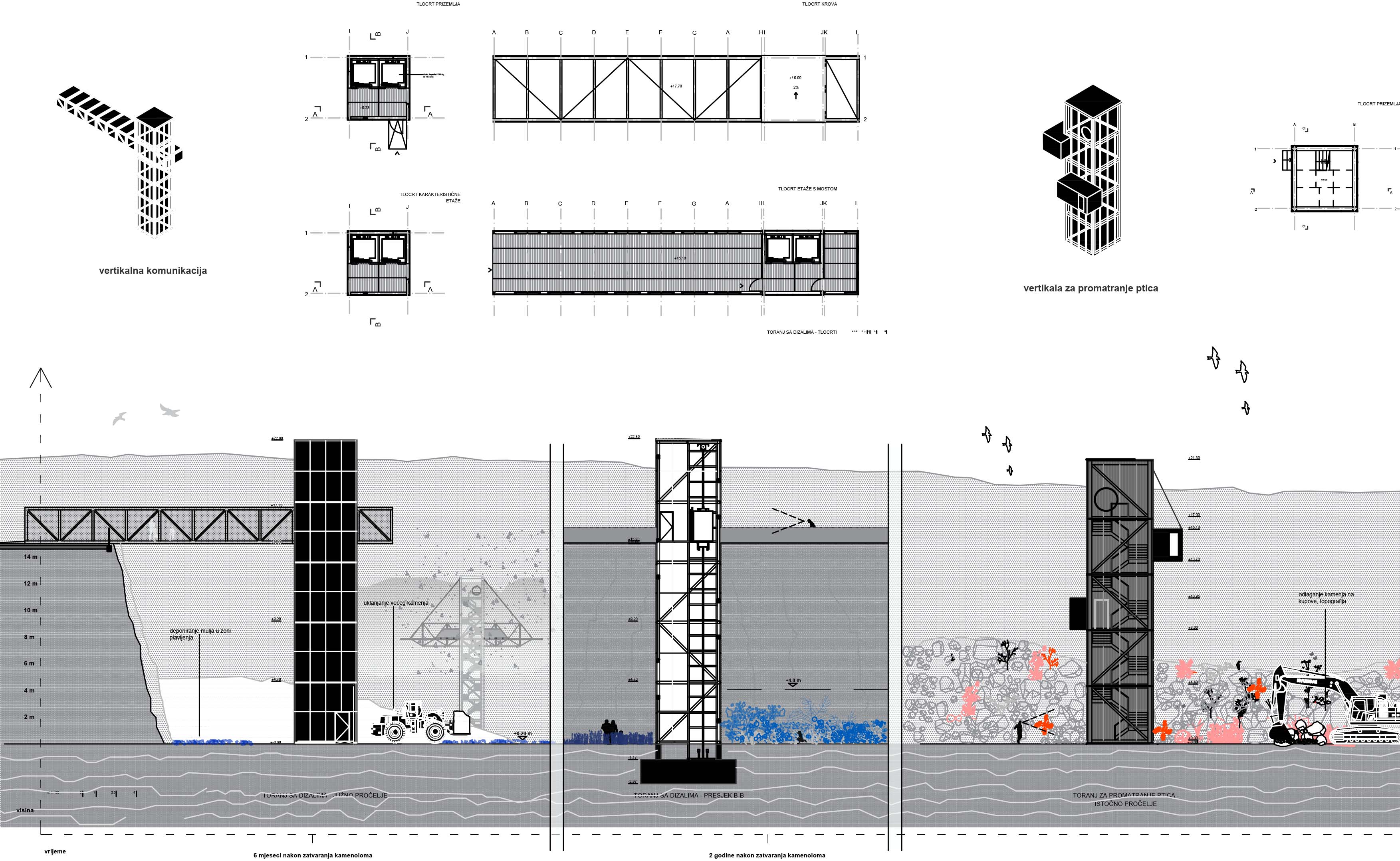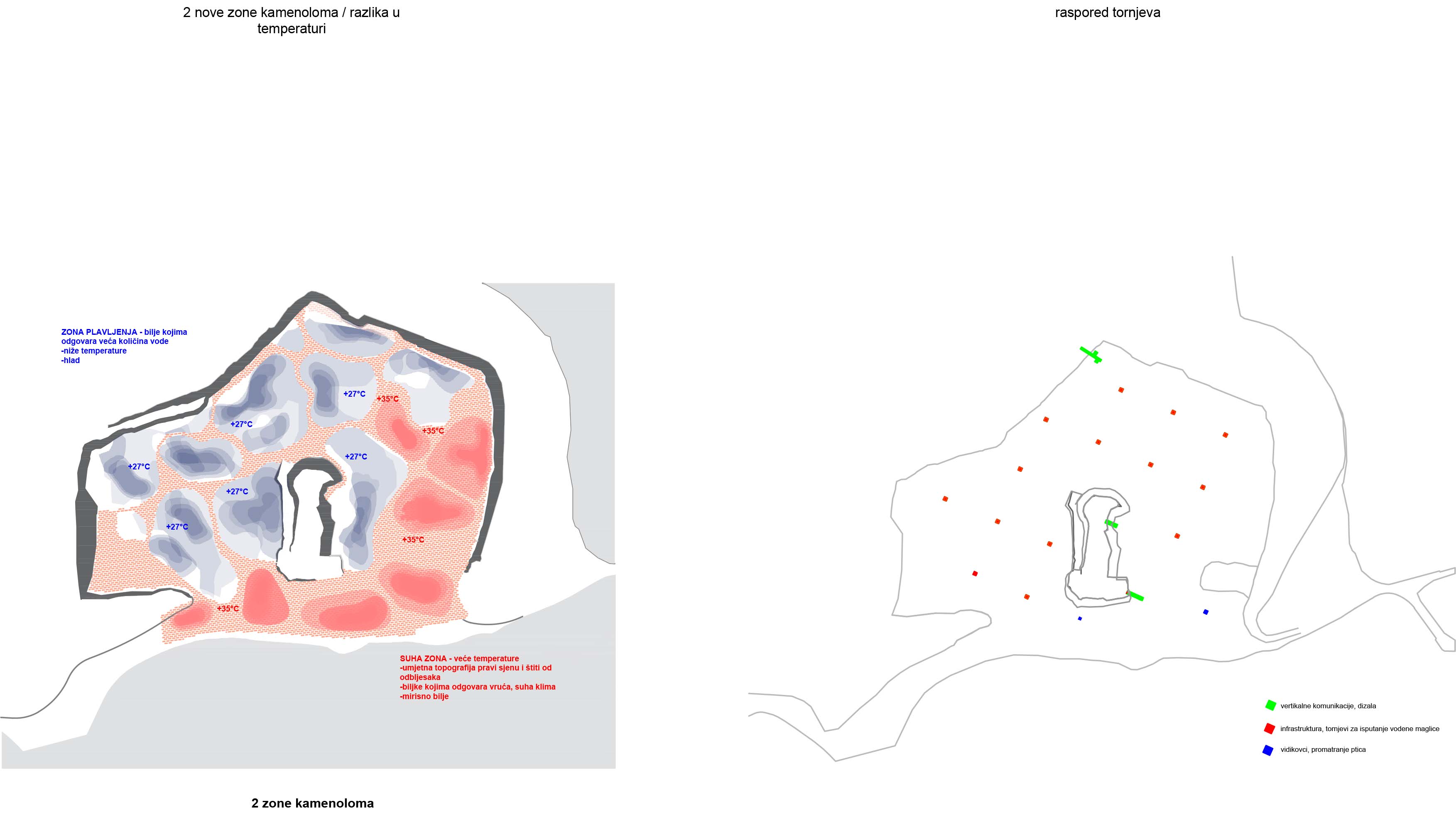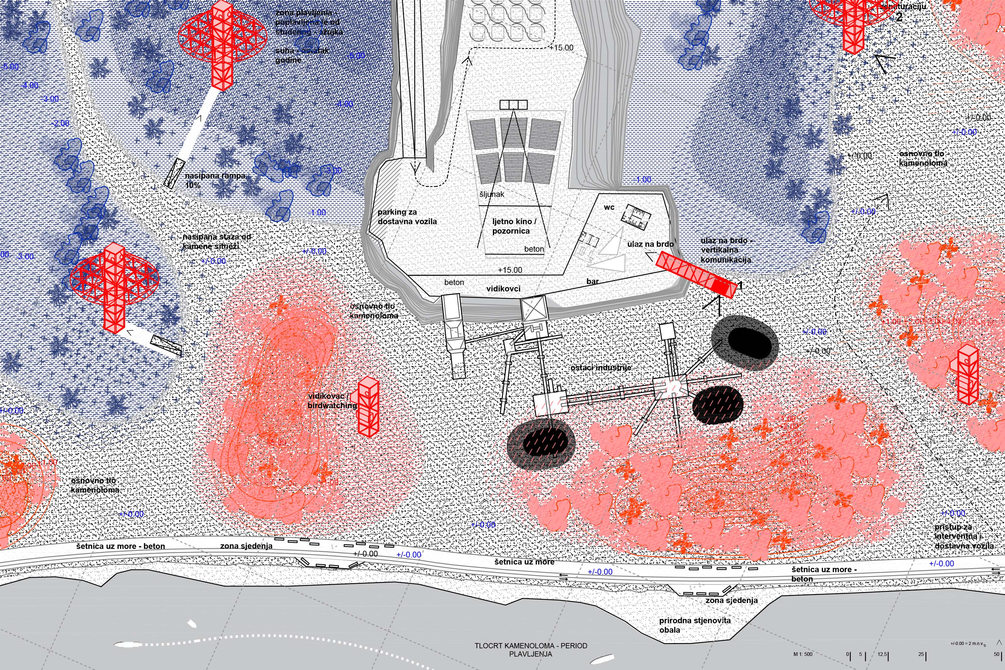 Konceptom se u nekoć industrijsko područje kamenoloma umeće nova priroda, a surov kontekst postaje park. Krater kamenoloma prepreka je u povezivanju dviju cjelina: grada Novigrada i ušća Mirne – ornitološkog rezervata, a povezivanjem tih dviju cjelina omogućilo bi se upoznavanje lokalnog stanovništva s vrijednim ušćem rijeke Mirne. Projektom se ostvaruju nove pješačke veze kroz kamenolom. On se postupno renaturira, klima u njemu postaje blaža, biljke pružaju sjenu i zaklon od odbljesaka, stvara se nova topografija. Nađeni materijal se ponovno koristi u kreiranju terena i staza.