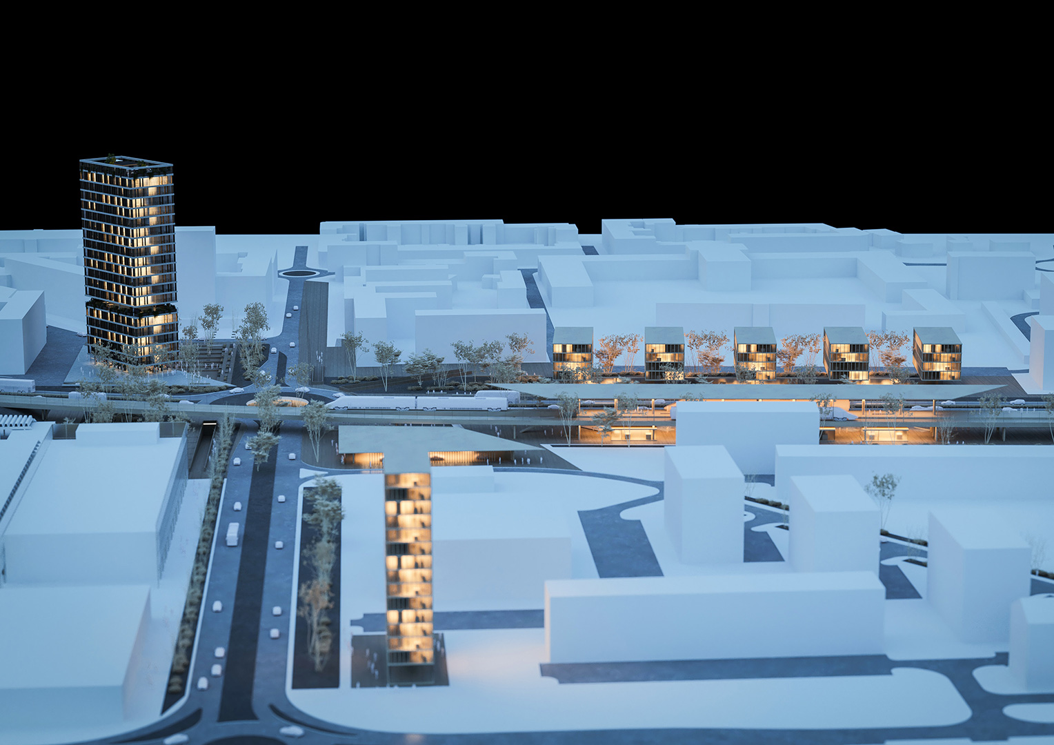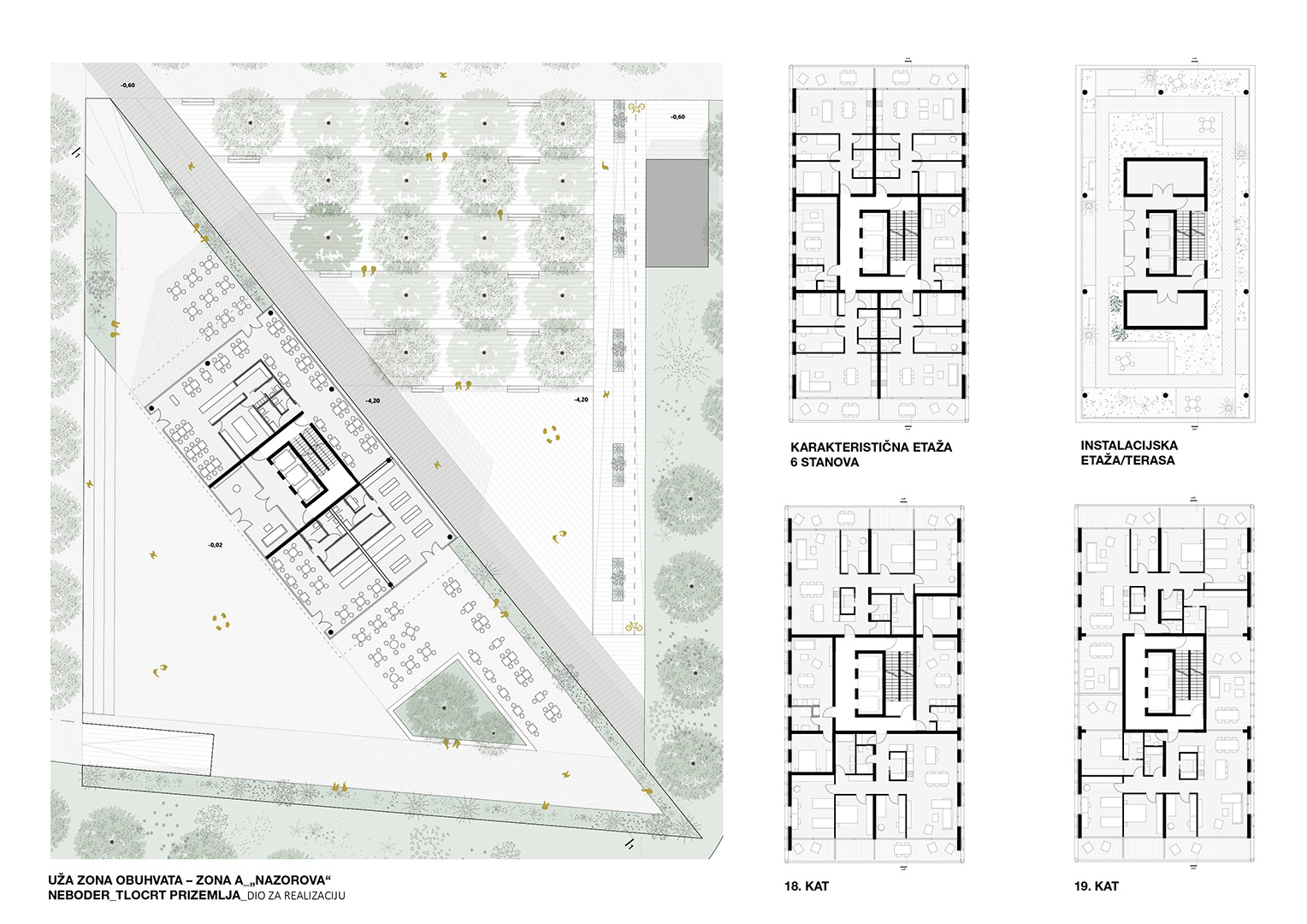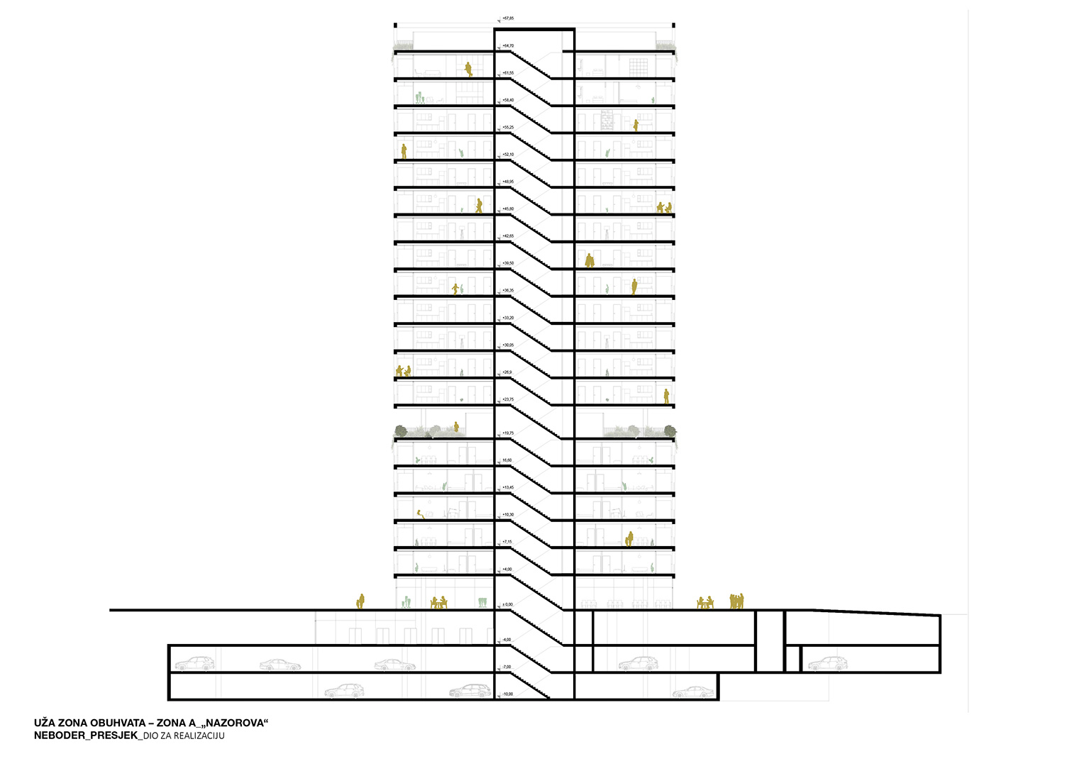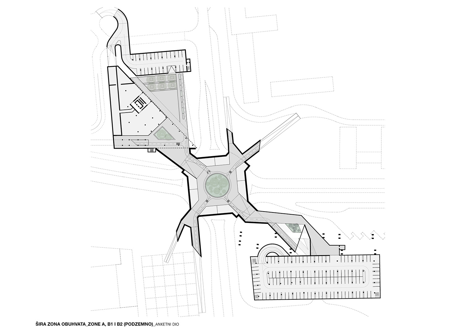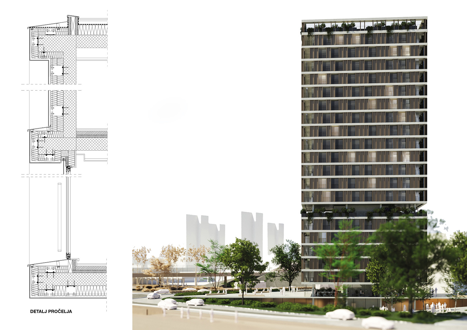 Razmišljanje o genezi (Jozefini i zvijezdi) definira konceptualne postavke. Neboder usmjerenjem i oblikom prati i tangira pravac povijesne osi. Volumeni i plohe dijelom su fragmenti zvijezde. Oblici se prilagođavaju prodoru pravca. Promet je tema integracije. Sarajevska i Nazorova ulica povezuju se pravocrtnim koridorom za pješake, a autobusni kolodvor prelazi na stranu željezničkoga. Promet u mirovanju (garaže) na istom je pravcu, u istim podzemnim nivoima. Pješački putovi isprepleću se u zoni sigurnoga – pješačkog partera koji je nadzeman i podzeman.
