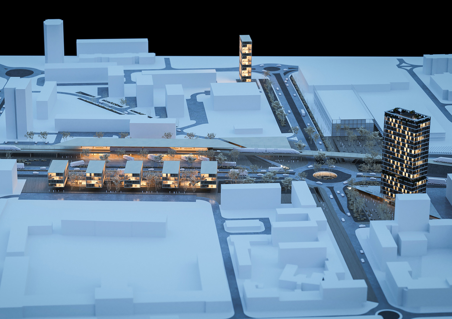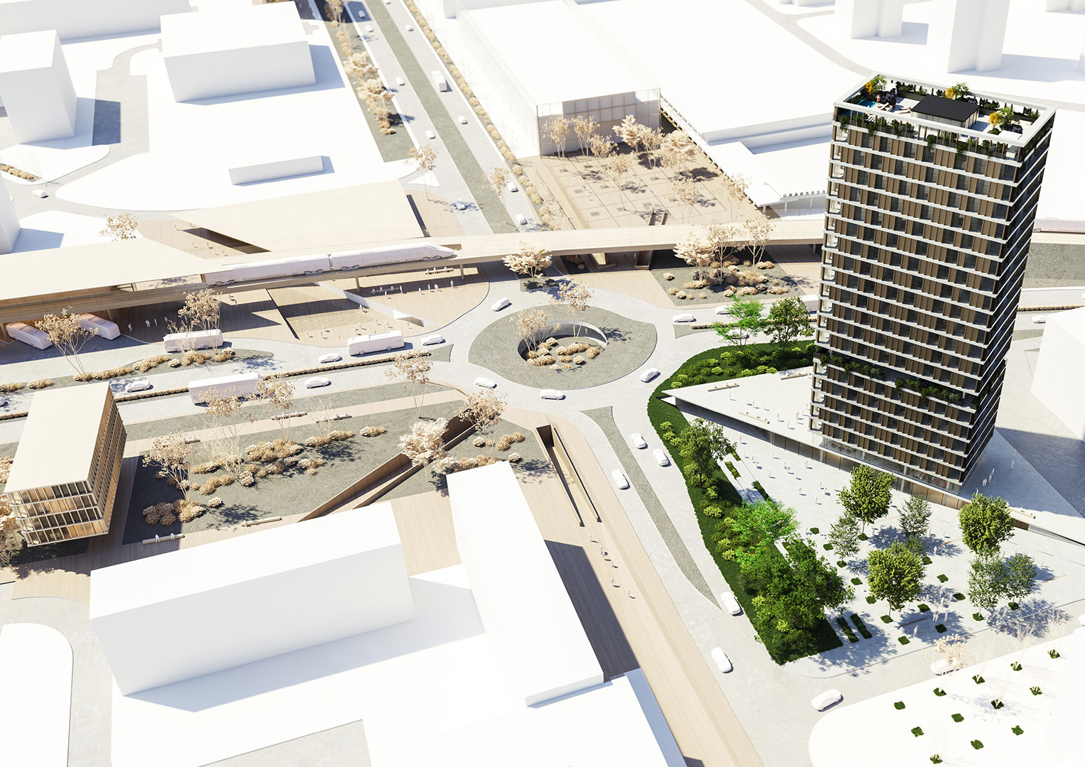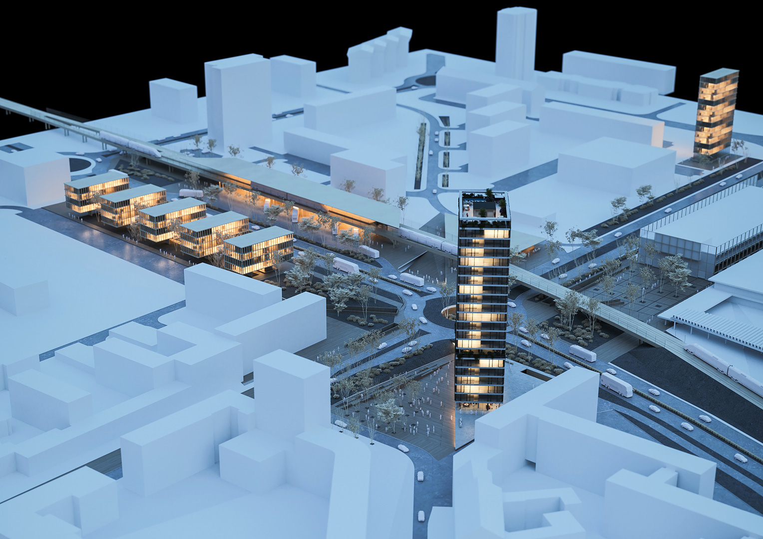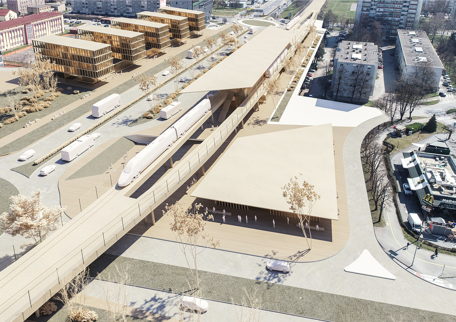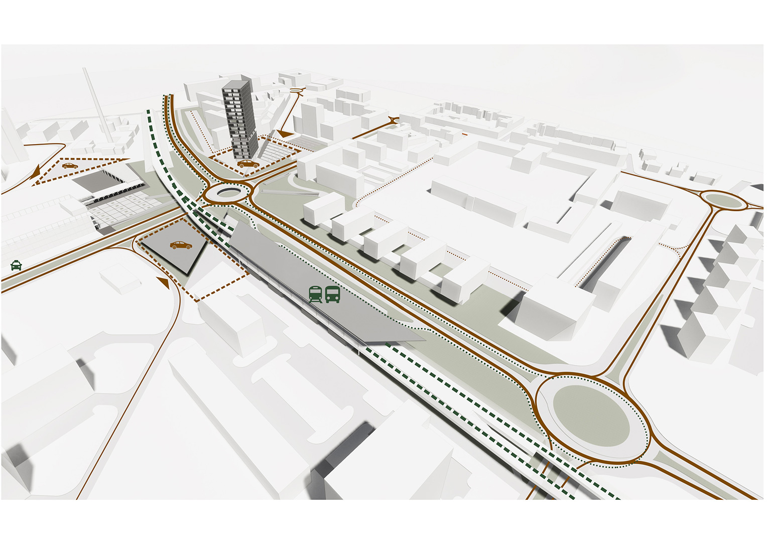 Razmišljanje o genezi (Jozefini i zvijezdi) definira konceptualne postavke. Neboder usmjerenjem i oblikom prati i tangira pravac povijesne osi. Volumeni i plohe dijelom su fragmenti zvijezde. Oblici se prilagođavaju prodoru pravca. Promet je tema integracije. Sarajevska i Nazorova ulica povezuju se pravocrtnim koridorom za pješake, a autobusni kolodvor prelazi na stranu željezničkoga. Promet u mirovanju (garaže) na istom je pravcu, u istim podzemnim nivoima. Pješački putovi isprepleću se u zoni sigurnoga – pješačkog partera koji je nadzeman i podzeman.
