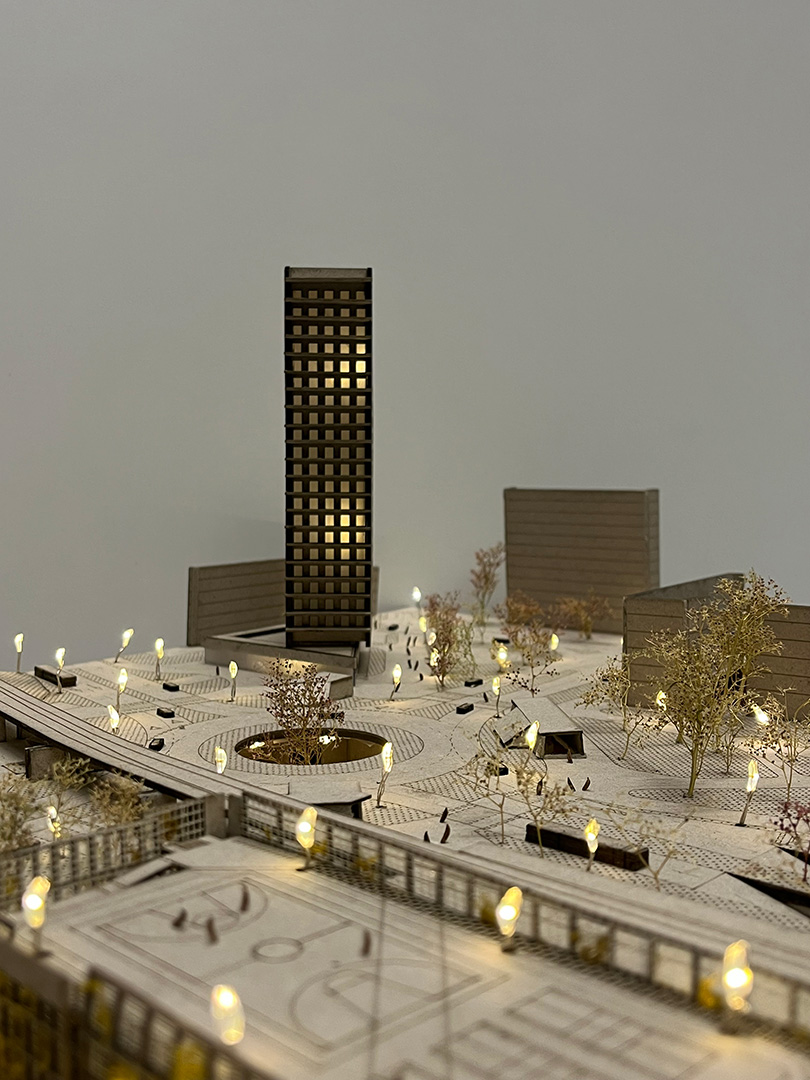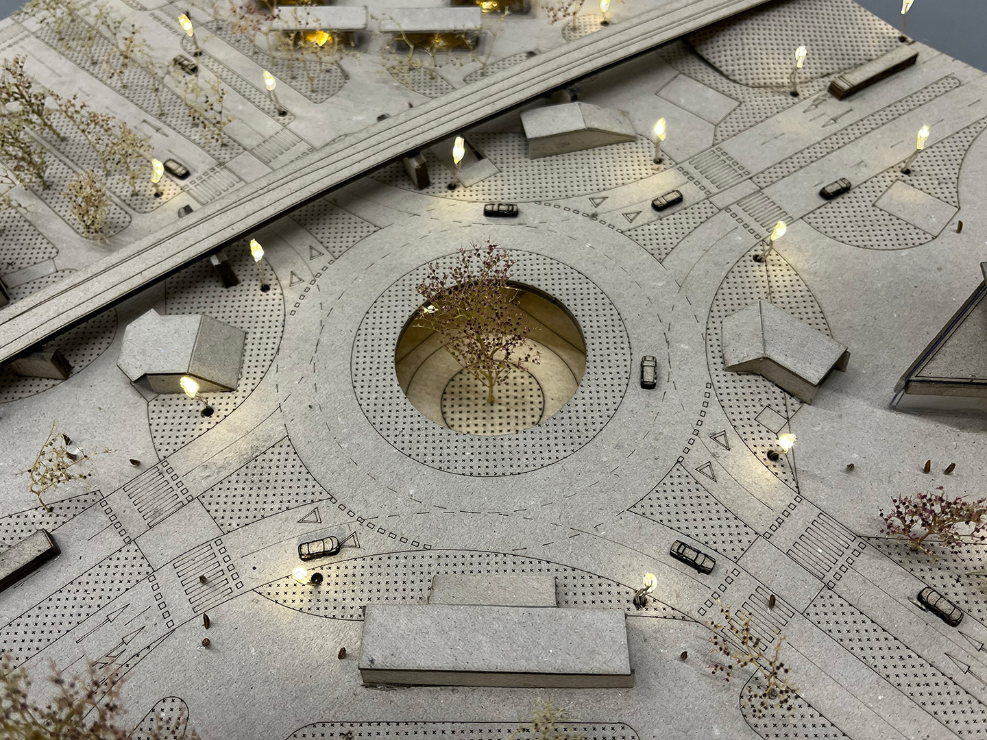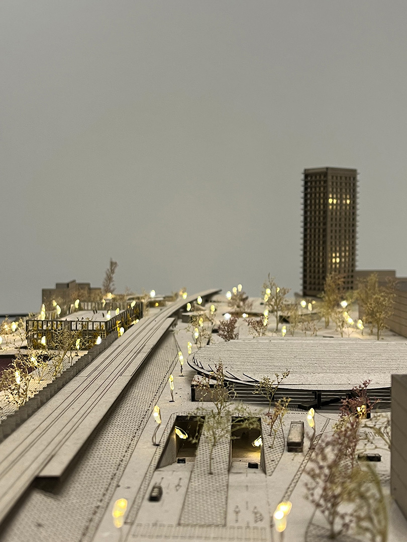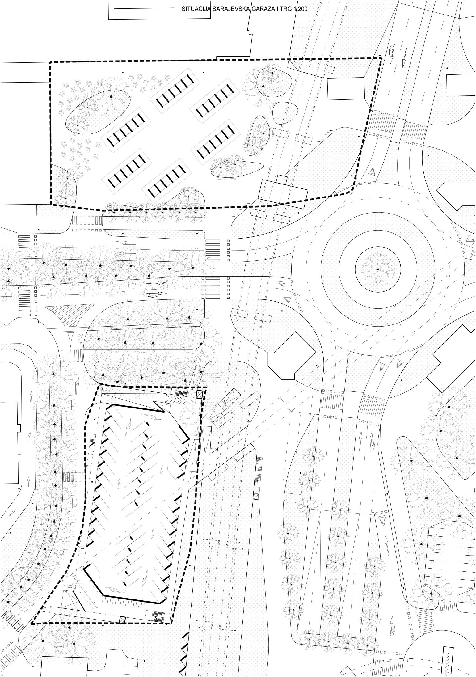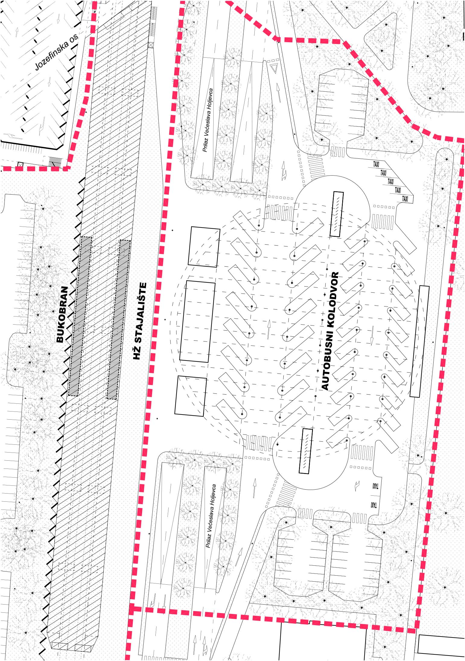 Natječajni projekt bavi se rješavanjem problematike šire zone glavne gradske osi grada Karlovca te usko vezanim lokacijama – javnom garažom u Sarajevskoj ulici, trgom uz gradsku tržnicu te stambenim neboderom u Nazorovoj ulici. Rješavanje prometa šire zone predlaže se pomoću višetračnog rotora te uređenjem prostora autobusnog kolodvora i željezničke postaje. Ostalim zahvatima u prostoru nastojalo se vratiti kontinuitet prekinute povijesne trase, Jozefinske ceste, te omogućiti fluidni prostor pješacima.