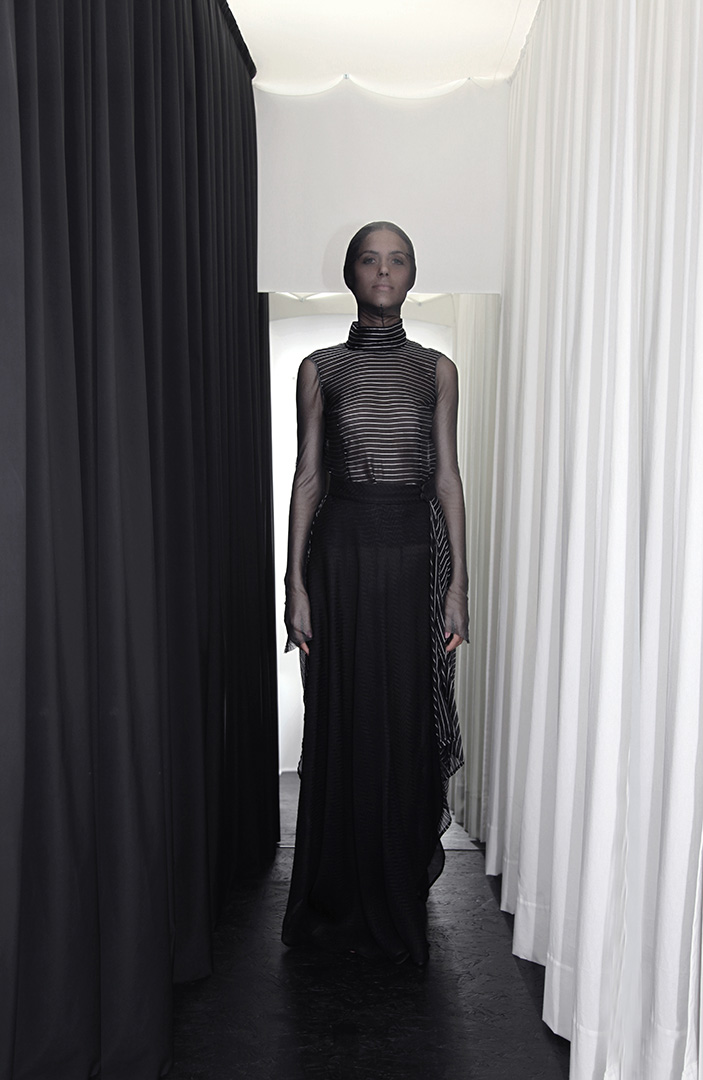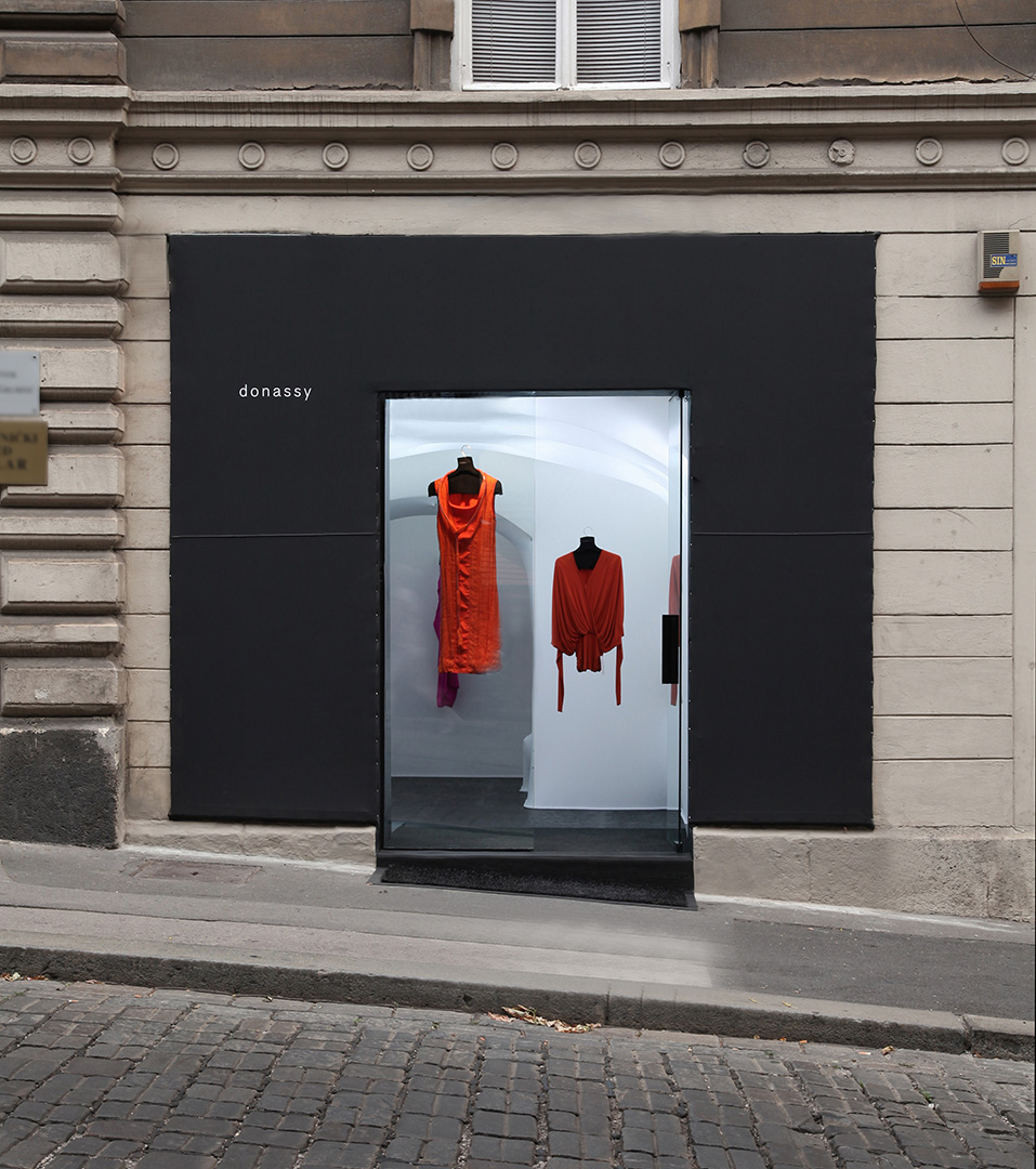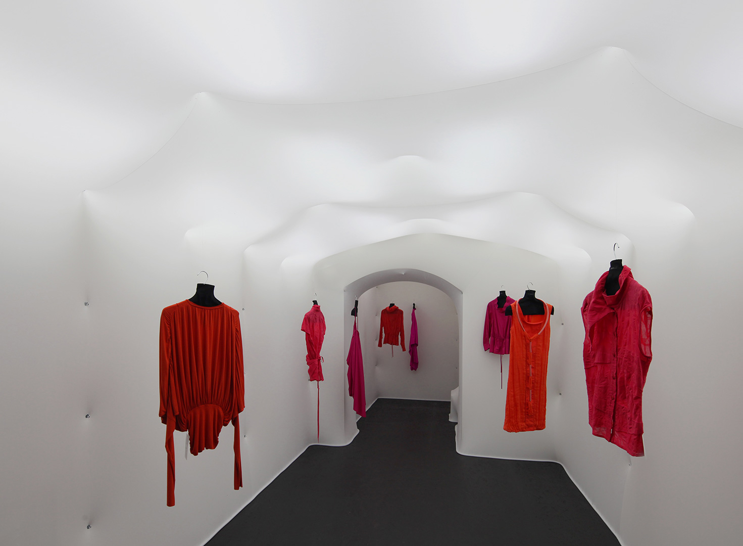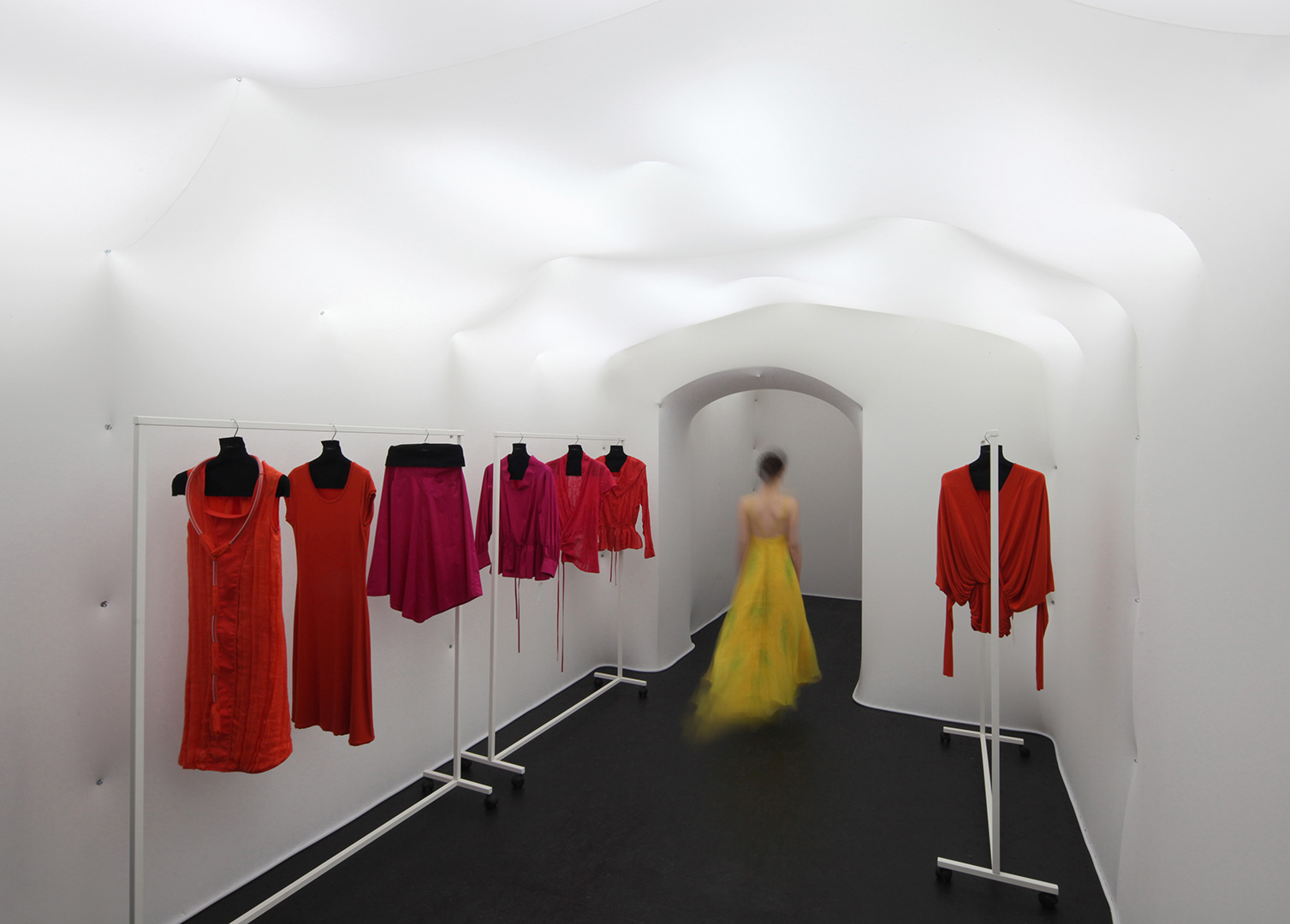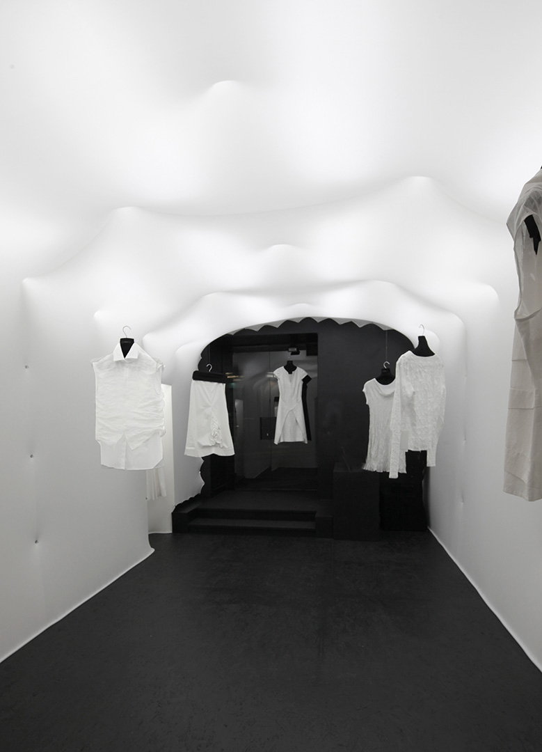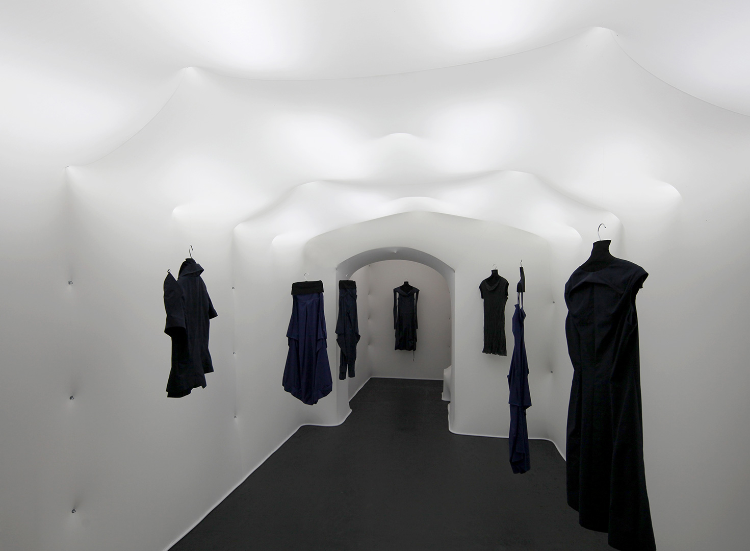 Ulični lokal u historicističkoj građevini transformiran je bez građevinskih zahvata, tako da se u realizaciji preklapaju mediji arhitekture i mode i tehnike realizacije preuzete iz modnog dizajna, spojene u jedinstvenu konceptualnu cjelinu. Primarno sredstvo oblikovanja prostora je elastična translucentna tkanina koja je krojena i sašivena prema couture principima, bez podkonstrukcije, montirana isključivo točkastim sidrenjem. Čitav je prostor odjeven u elastičnu opnu koja je istovremeno i sredstvo oblikovanja i sustav za postizanje difuzne rasvjete.