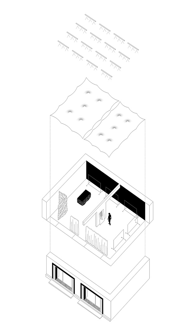 Koncept transformira zatečeni prostor za novu namjenu unutar postojećega, a realizacija se oslanja na vlastite produkcijske resurse. Upotrebljivi elementi zadržavaju se u izvornom obliku ili se minimalno transformiraju. Interijerska oprema je izvorni dizajn, s eksperimentiranjem u primjeni materijala, koji su primarno proizvedeni za sasvim drugu namjenu (elastični tekstil za sportsku odjeću, krovna folija – parna brana), na utilitarne prostorne produkte pri čemu se u pristupu projektiranju i realizaciji preklapaju tehnike arhitekture, modnog dizajna i produkt dizajna.