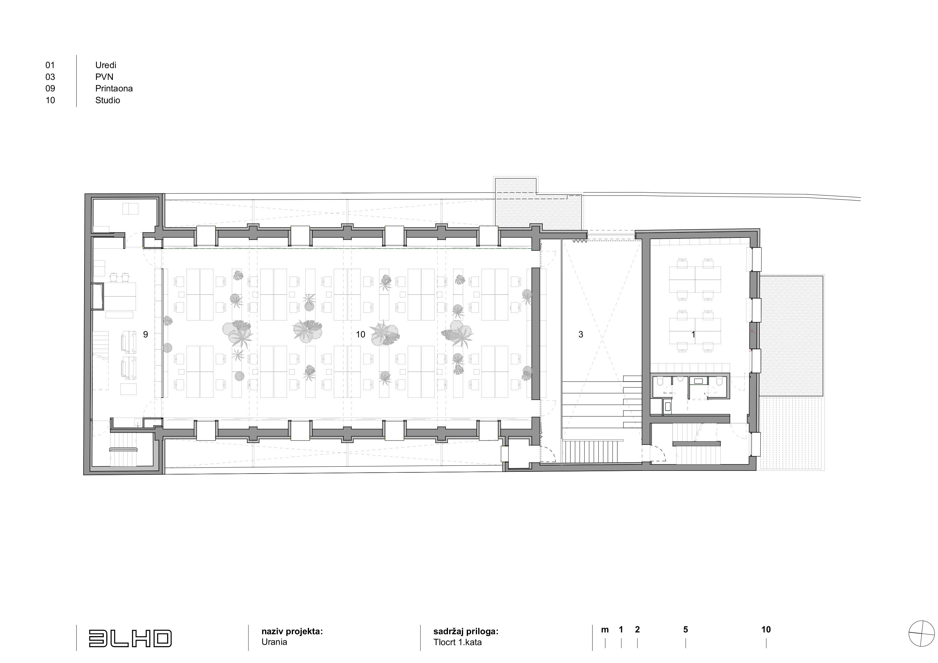 Projekt rekonstrukcije starog kina Urania iz 1939. u javni prostor različitih namjena i uredski prostor. Usprkos starosti, zgrada je imala dobre predispozicije za prilagodbu. Struktura je bila vrlo dobro očuvana, s potpornim stupovima, lukovima u velikoj dvorani i sitnorebrastim betonskim stropovima. U rekonstrukciji su zadržani postojeći volumeni: ulazni prostor i prateći uredi, veliki lobby i kinodvorana, dodan je novi ulazni stakleni volumen. Urania je mjesto susreta, prostor za brojna javna događanja.