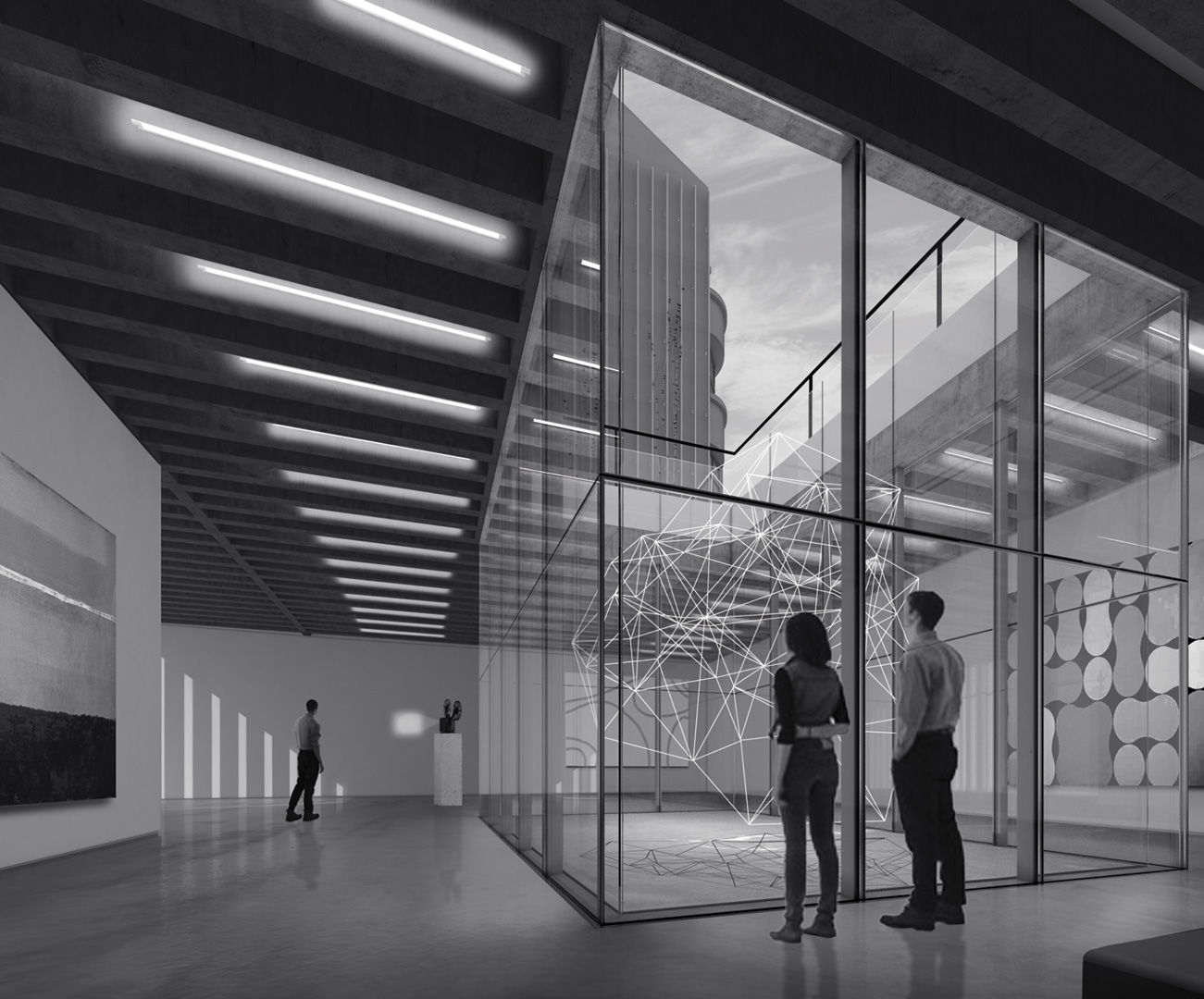 Jasna distinkcija konvencionalnoga i eksperimentalnoga – izložbe manjih formata i stalne kolekcije na višim katovima naspram rawpodzemlja za slobodne forme.