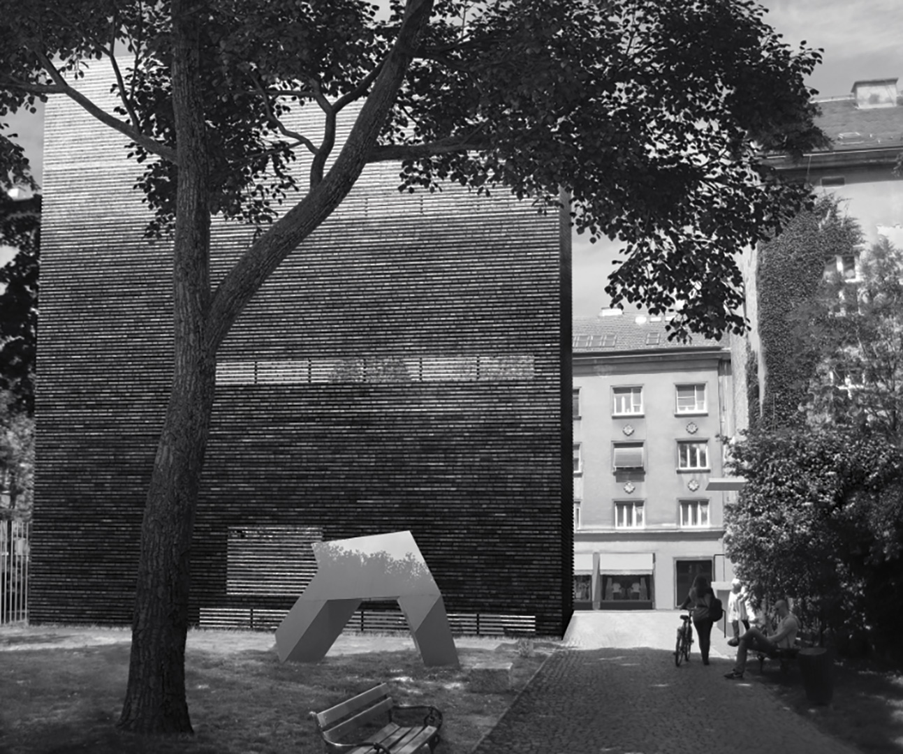 Reuse – pojavnošću kuće kao tihoga ciglenog monolita pozornost se skreće na umjetnine, a tek potom na arhitekturu. Tom minimalnom gestom novoizgrađeno se stapa s anonimnim perimetrom bloka.