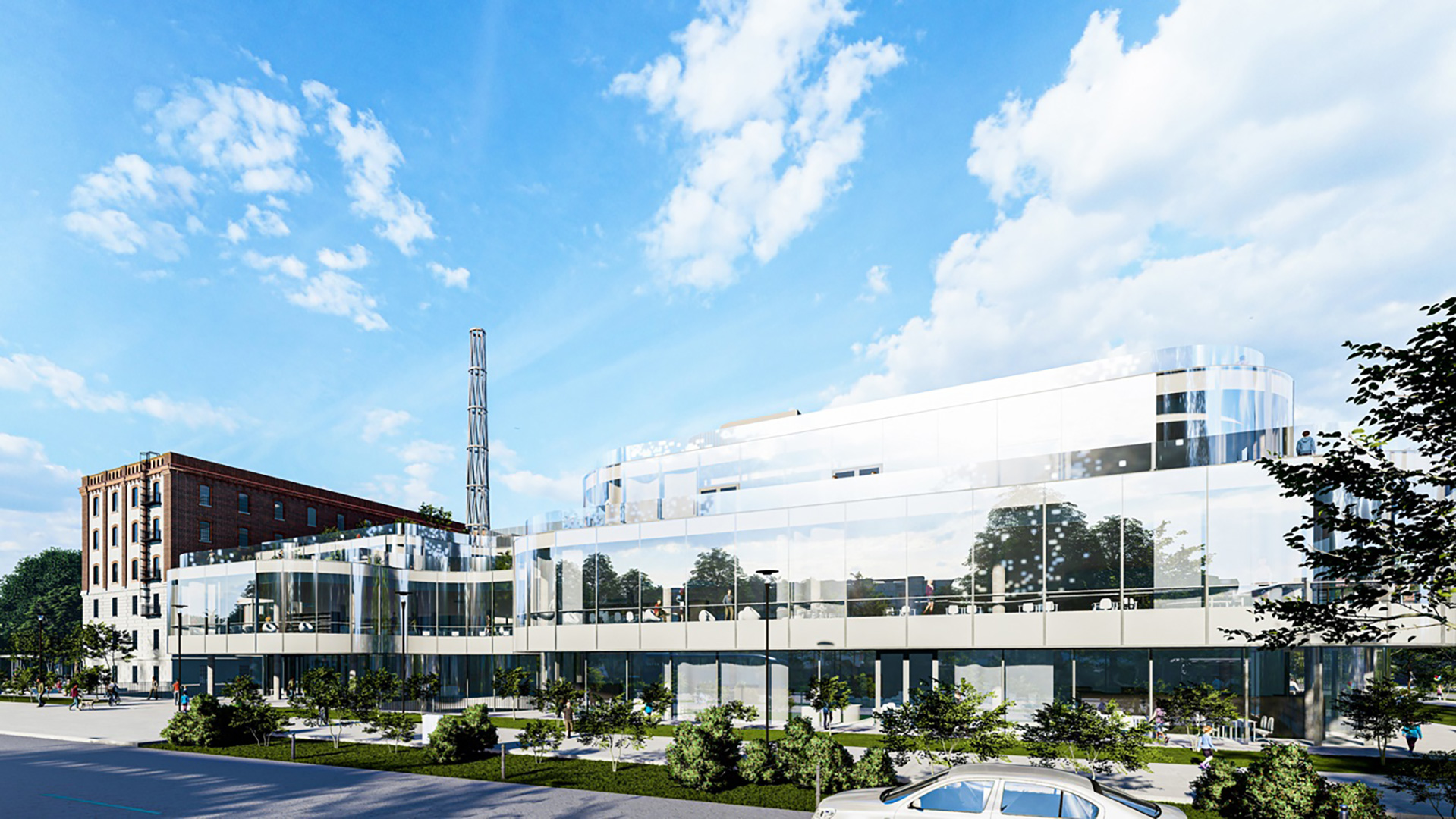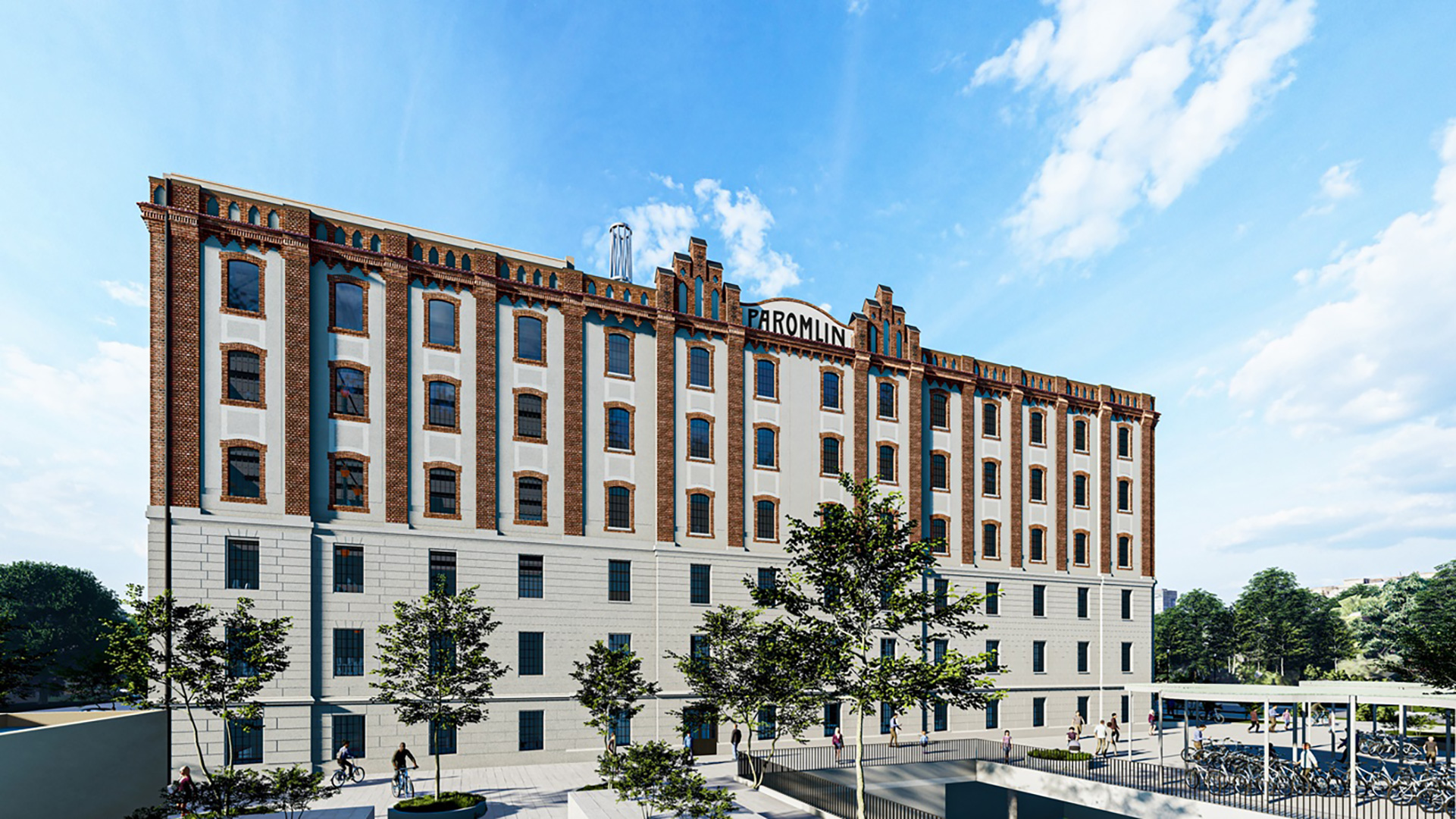 Novi Paromlin osmišljen je kao kompleks u kojemu je postignut sklad između visokovrijednoga građevnog fonda industrijske baštine i suvremene arhitekture. Staklena ovojnica dogradnje, u stalnoj igri kontrasta, reflektira okolnu faksimilnu zgradu mlina te obnovljenih objekata skladišta brašna i silosa. Ona se dematerijalizira i pritom naglašava ljepotu industrijske baštine. Paromlin postaje inspirativno okruženje za druženje i učenje svih društvenih skupina te mjesto razmjene misli i ideja.