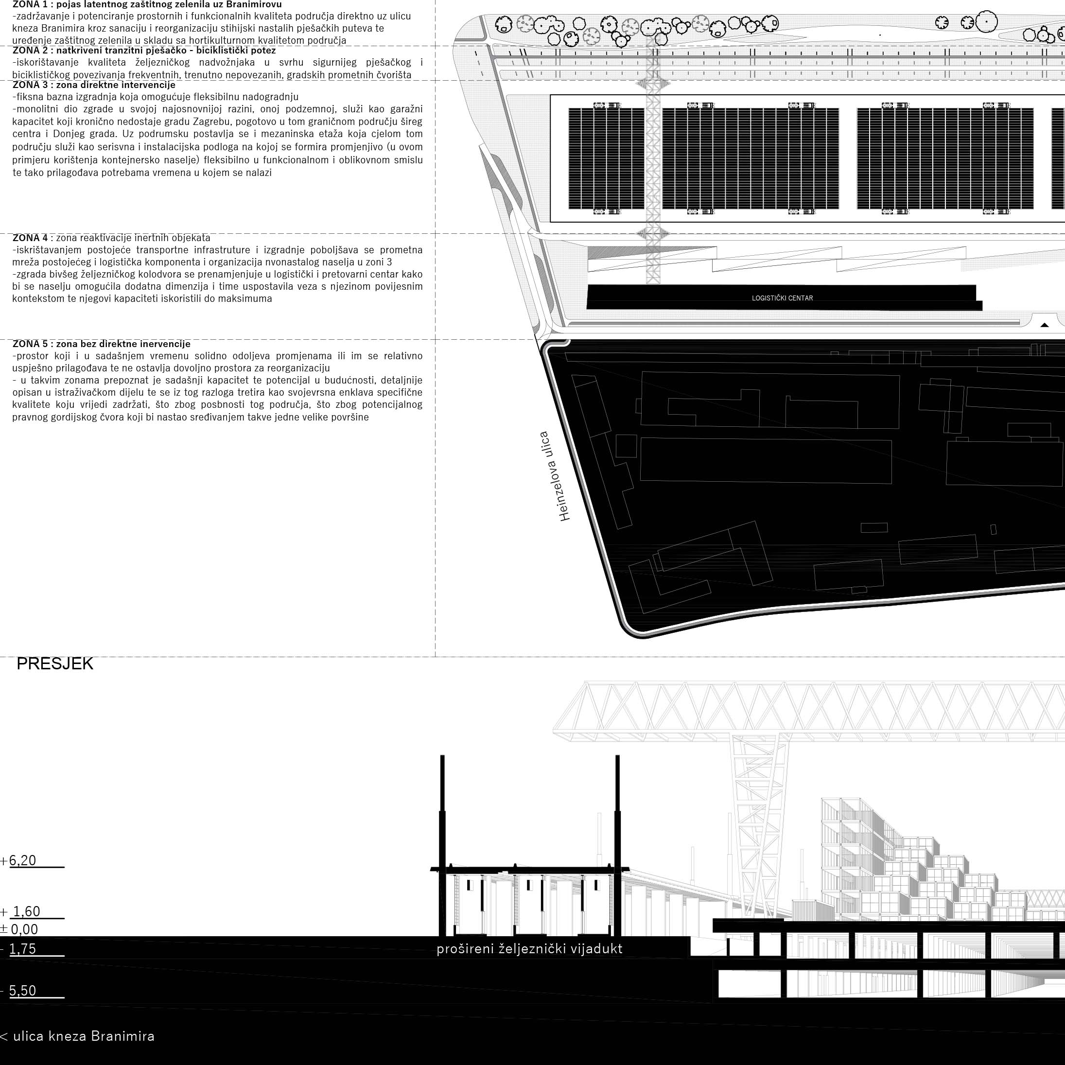 Područje intervencije nalazi se u Zagrebu na poziciji bivšega istočnog kolodvora, raznolikoga uporabnog karaktera s naglašenim procesom degradacije. Okosnica prostora je željeznički vijadukt uz Branimirovu te okolna područja; zonu zaštitnog zelenila sjeverno te zelenih, brownfield i neizgrađenih površina južnije od vijadukta. Intervencija se bazira na prezervaciji toga gradskog područja te nudi rješenje trenutačnoga beskarakternog stanja te dokazuje da takva područja ne moraju biti urbane cezure.