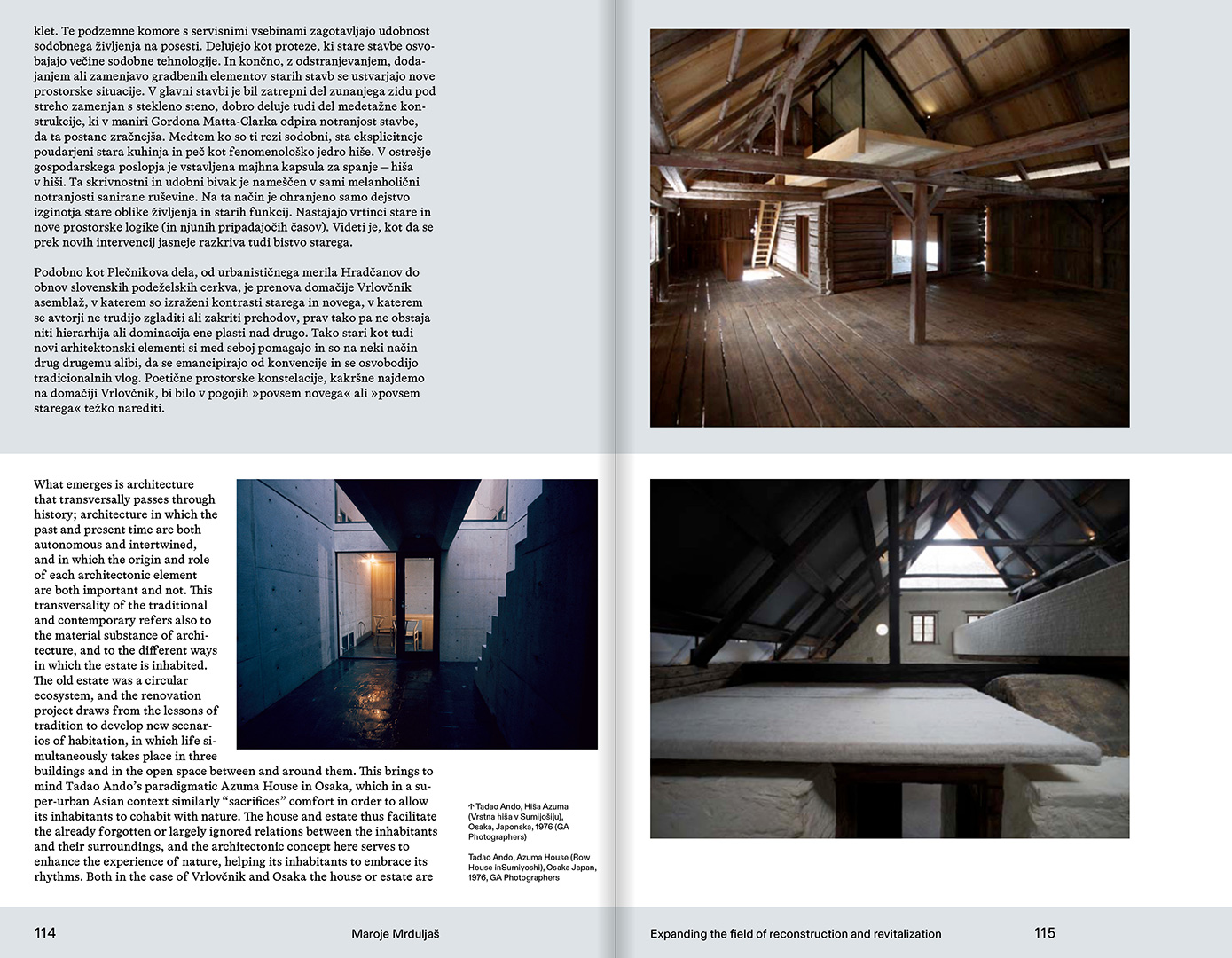 The book on the restoration of the Vrlovčnik estate was published by Oris House of Architecture in collaboration with the Slovenian architectural office Medprostor. Authors include Petra Čeferin, Miloš Kosec, Maroje Mrduljaš, and Juhani Pallasmaa, complemented by a photo essay by Damir Fabijanić.