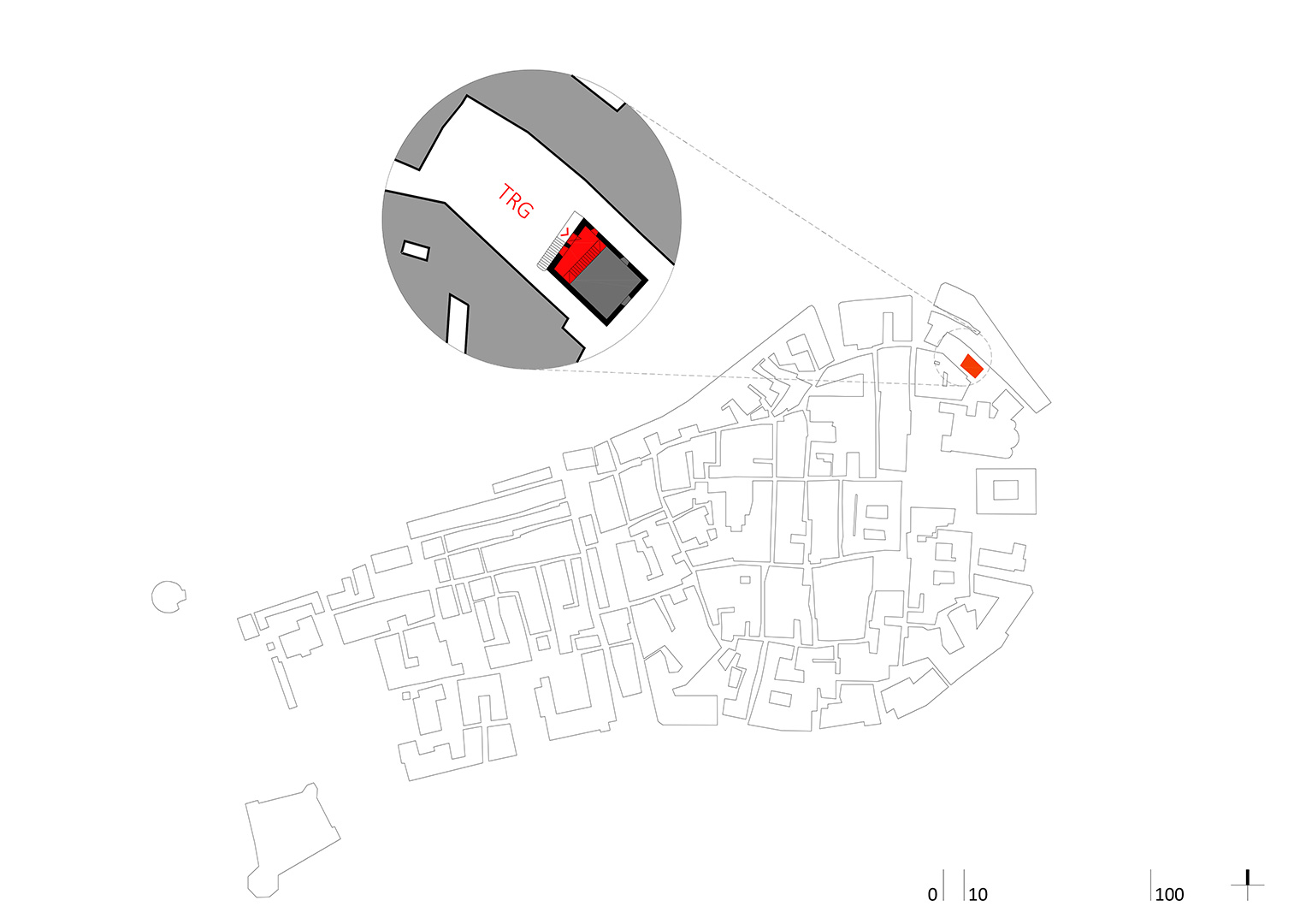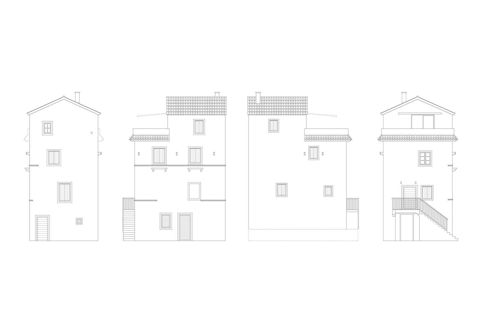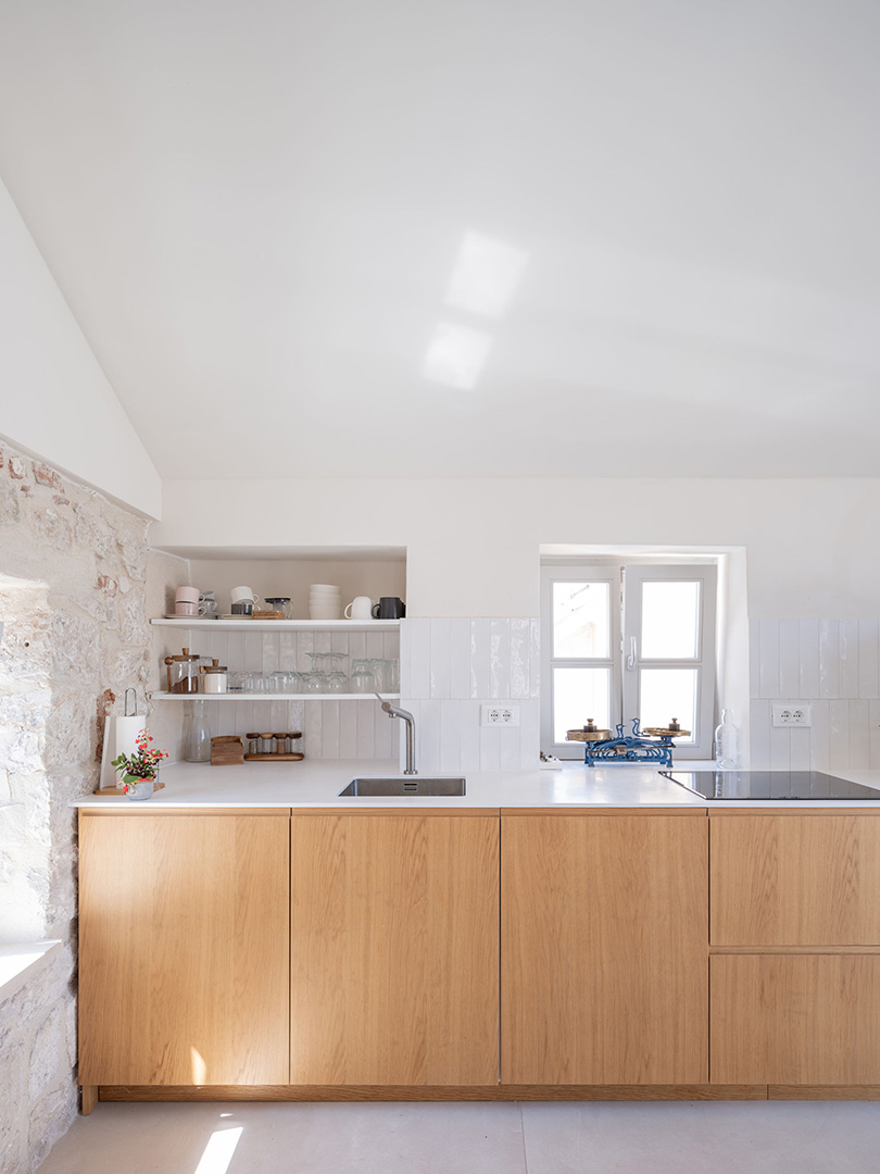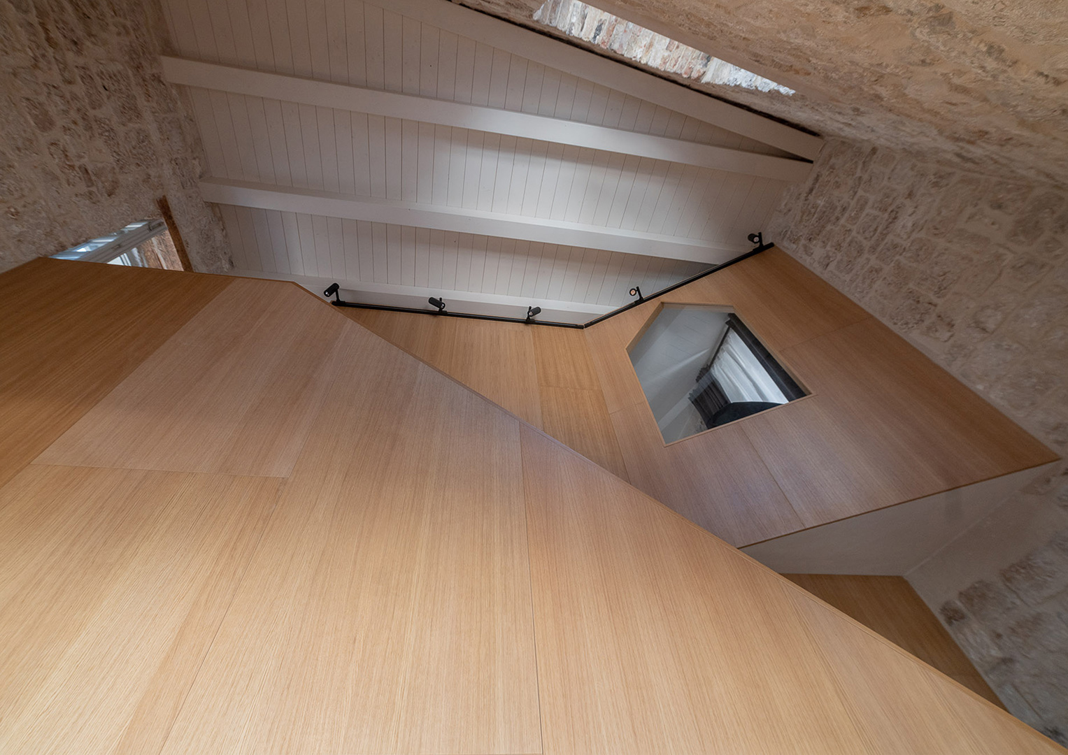 Grandfather Marko’s House is one of the rare standalone houses in Trogir’s historic city core. The public space from which one enters the house is transposed within the walls as a vertical void. The void, resembling a traditional Dalmatian alley in proportions, scale, and character, becomes the spine of the house’s spatial and functional structure. This interior alley connects the square in front of the house to the fireplace and rooftop terrace, establishing relationships within the house’s shell and evoking layered connections between the house and the city.